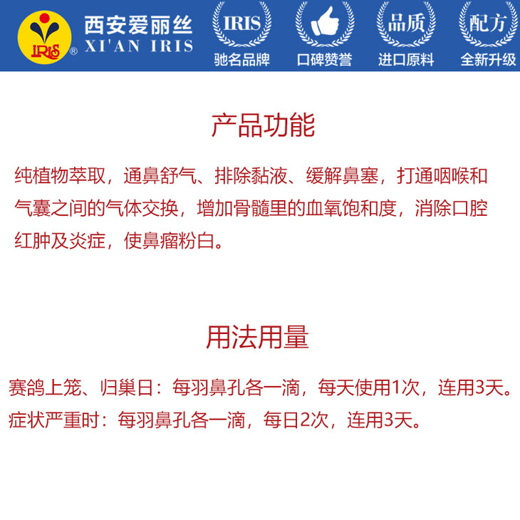 【呼鼻净】30ml赛鸽鼻塞鼻炎通鼻舒气排黏液畅通呼吸鸽子药(爱丽丝鸽药)