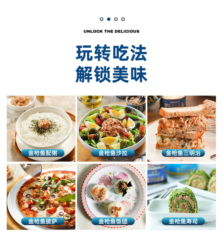 按照惯例,三种口味我还是全部都ALL IN啦!看了下配料表,真的是干净!配料里只含有黄鳍金枪鱼、特级初榨橄榄油/葵花籽油和盐,就冲着配料,谁还敢说罐头食品不健康?要相信科技的力量呀!