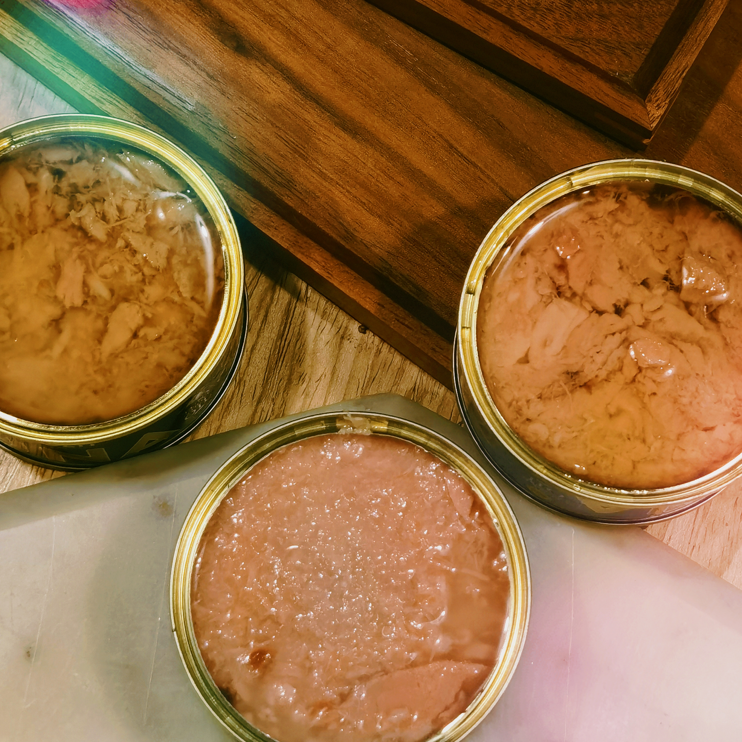 水浸金枪鱼罐头肉块大而完整,入口滑滑嫩嫩,因为没有加油腌渍,所以吃起来是纯鲜的鱼肉味,非常适合减脂的健身人,做沙拉和炒菜都很赞!橄榄油和葵花籽油这两罐,鱼肉是浸在油里的,口味上主要是油香味的区别,相比水浸款,吃起来会更清香,就算直接配清粥也很好吃!我肯定是选浸油的啦,更喜欢橄榄油味,不腥,鲜,拌色拉直接浇上去,油都省了!