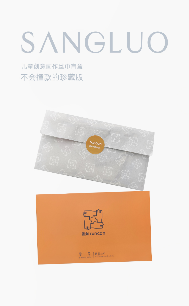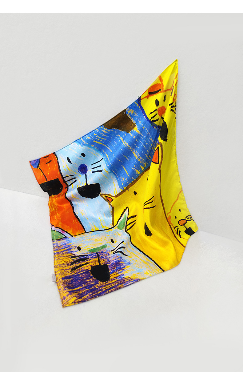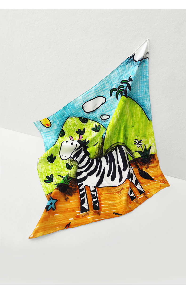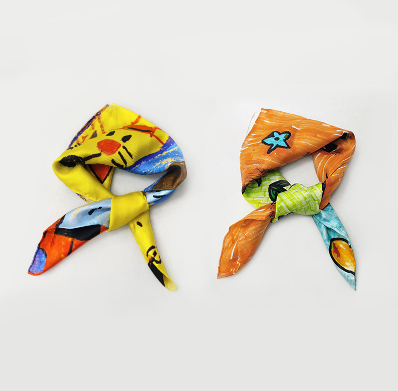 桑罗联合特殊儿童画作童趣丝巾桑蚕丝方巾盲盒颜色随机
