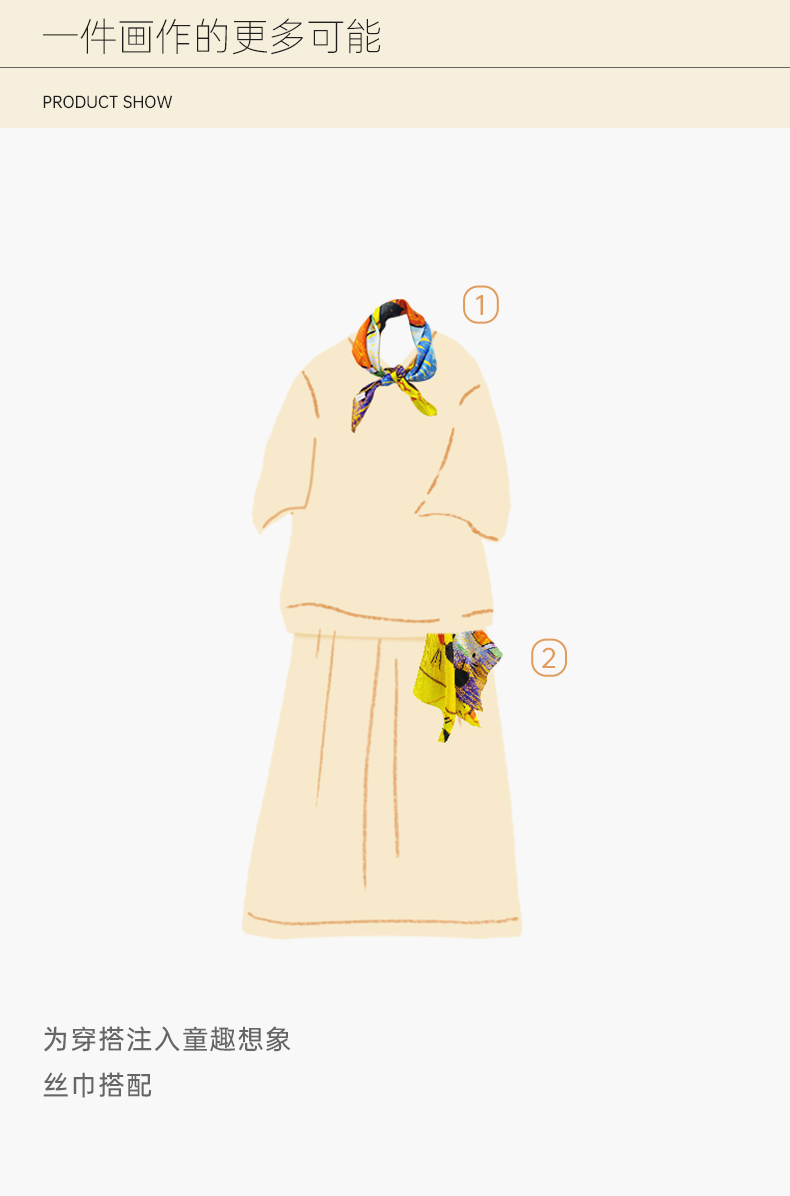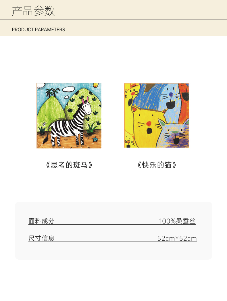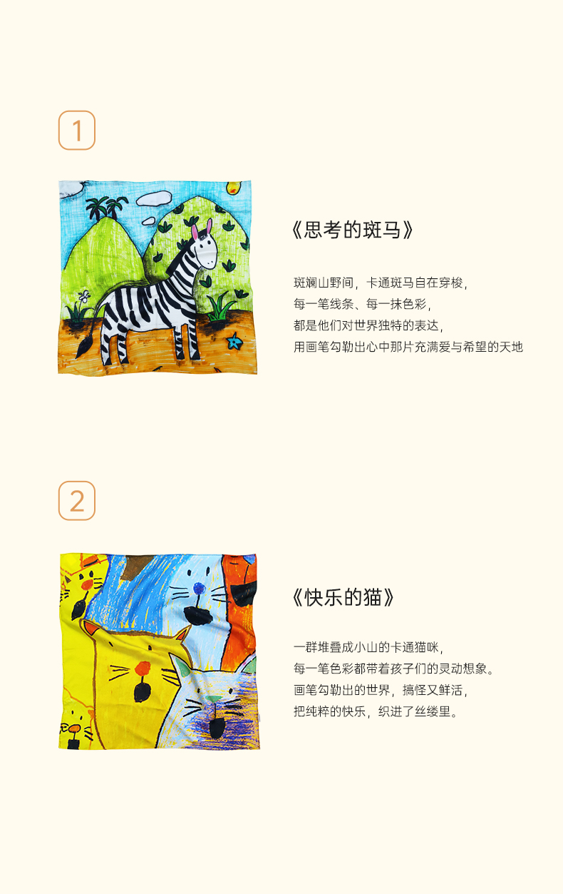 桑罗联合特殊儿童画作童趣丝巾桑蚕丝方巾盲盒颜色随机