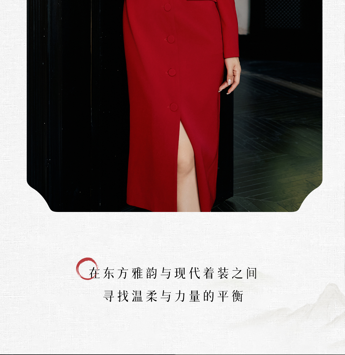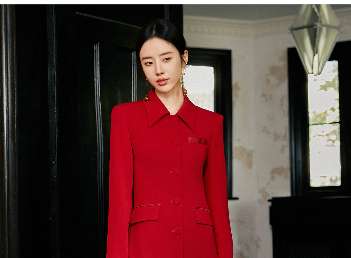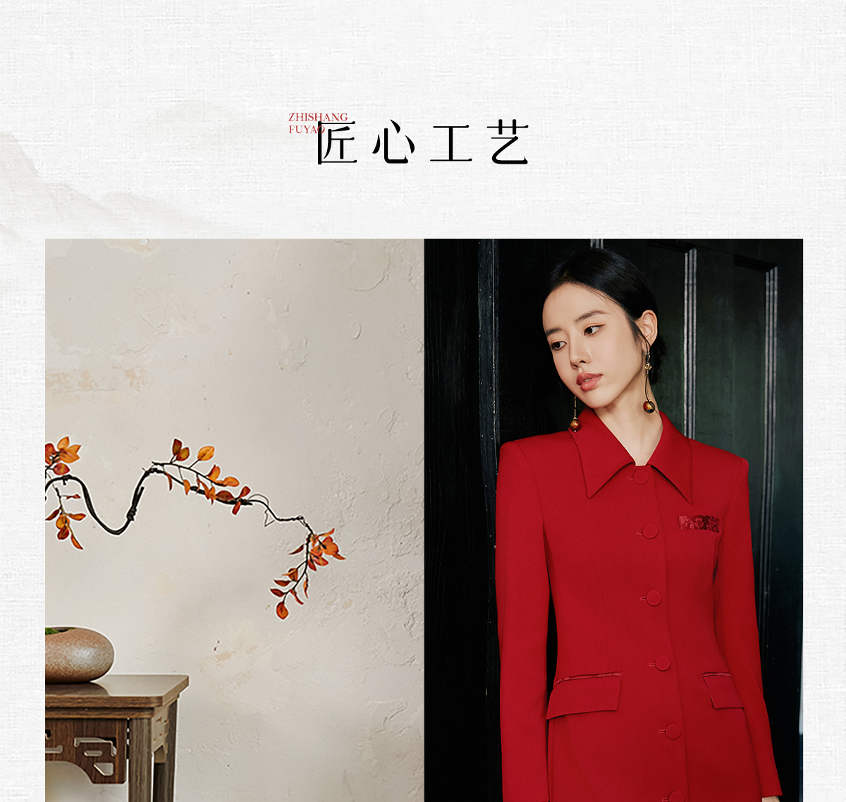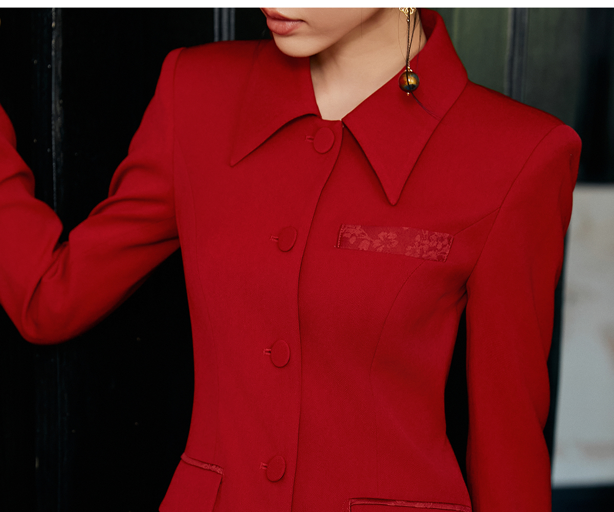 FUYAO扶摇 醋酸西装连衣裙女中国风年会妈妈婚宴礼服大红色裙子