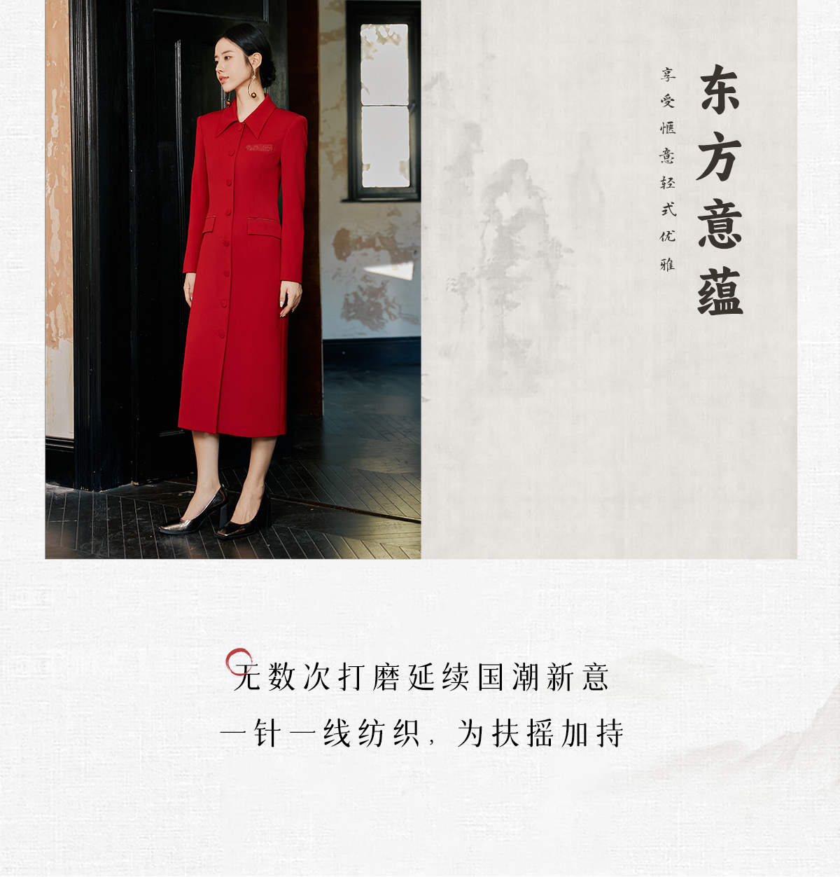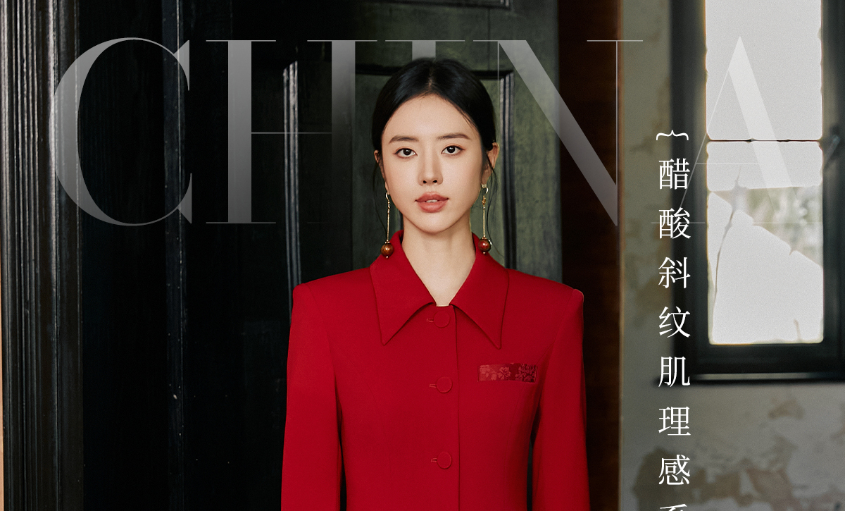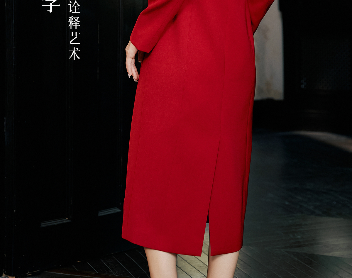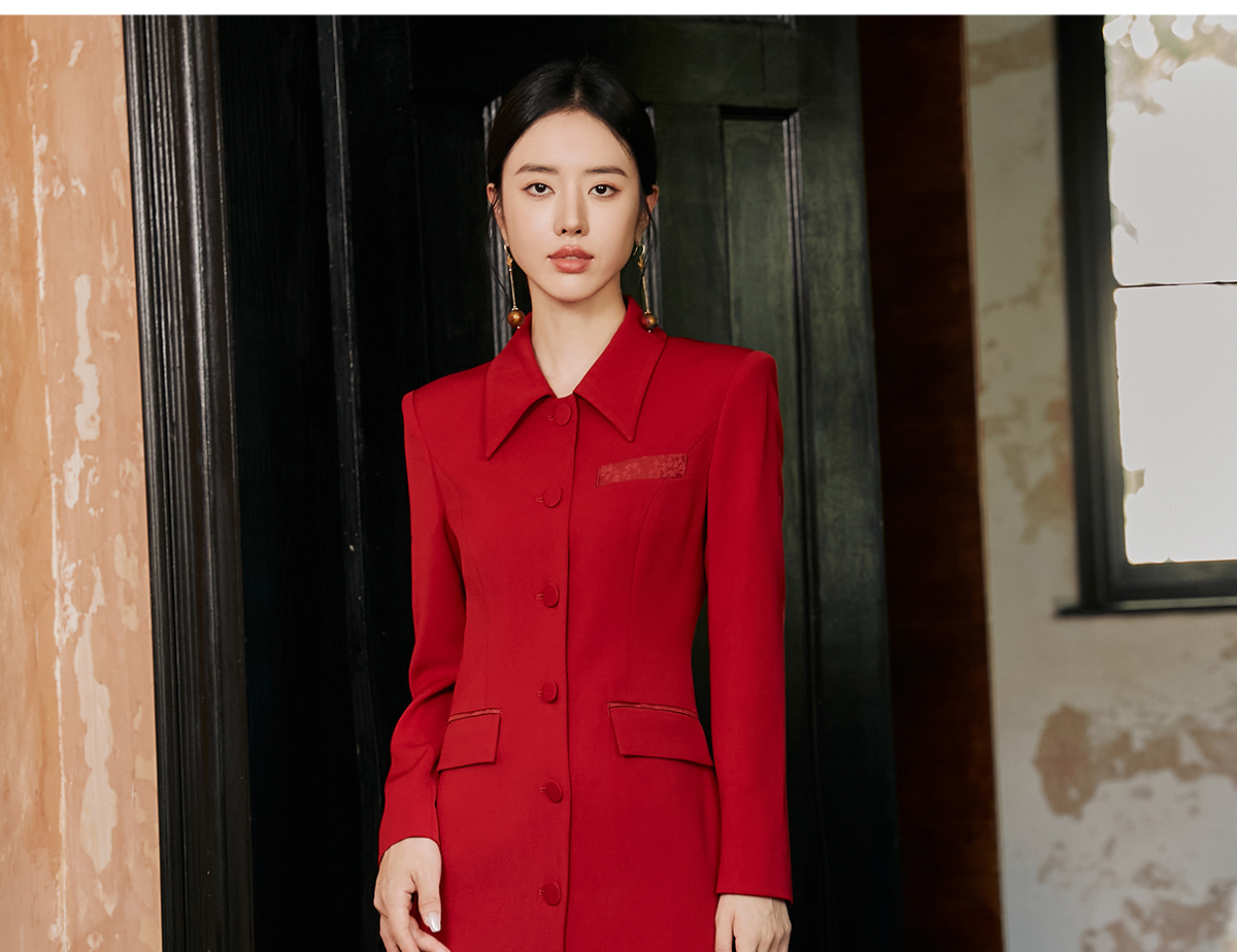 FUYAO扶摇 醋酸西装连衣裙女中国风年会妈妈婚宴礼服大红色裙子