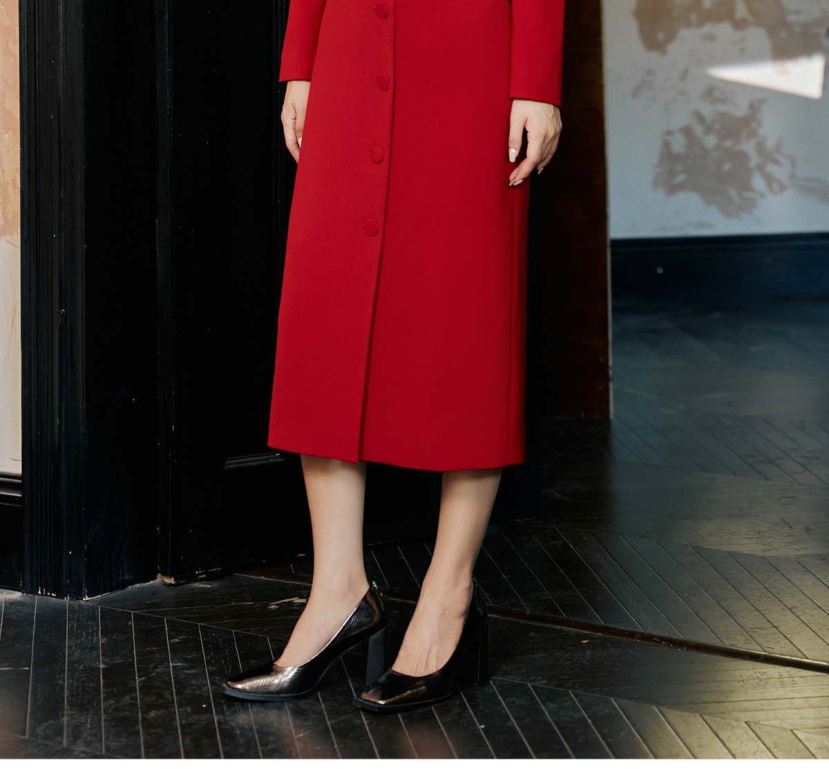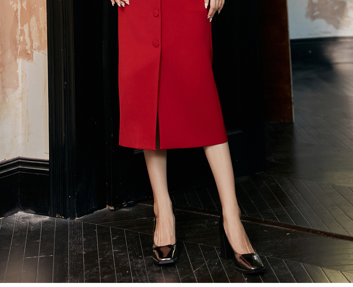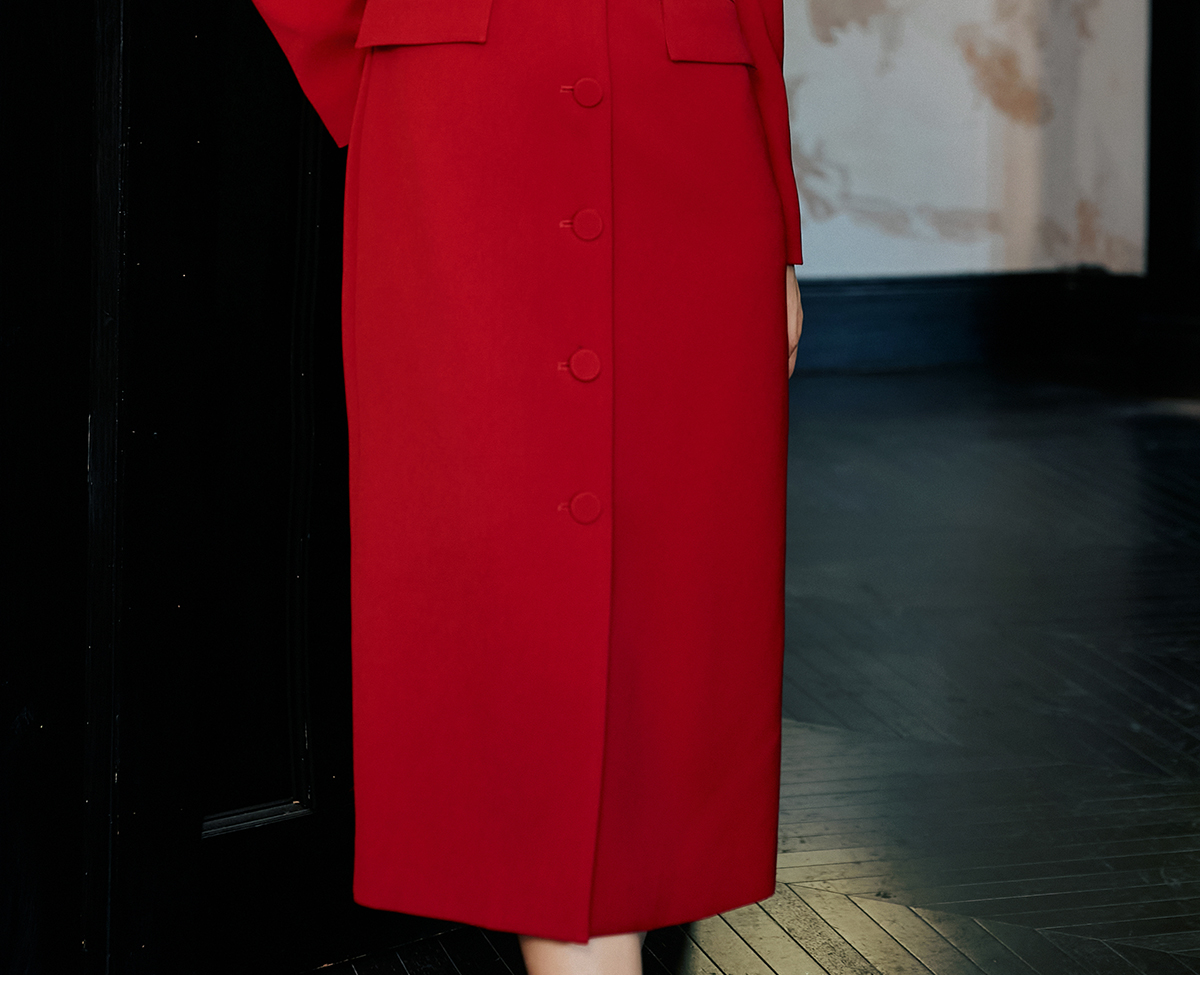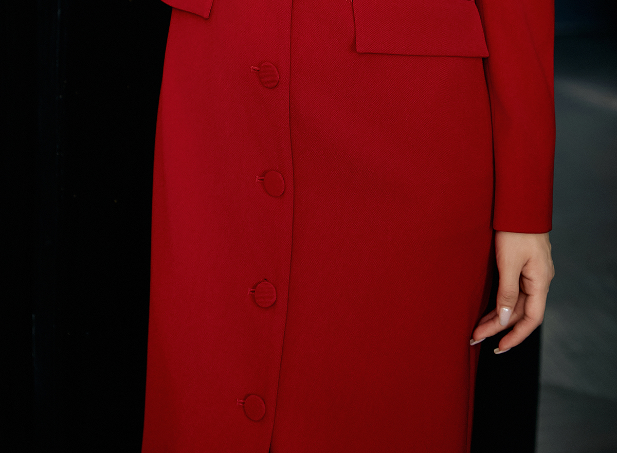 FUYAO扶摇 醋酸西装连衣裙女中国风年会妈妈婚宴礼服大红色裙子