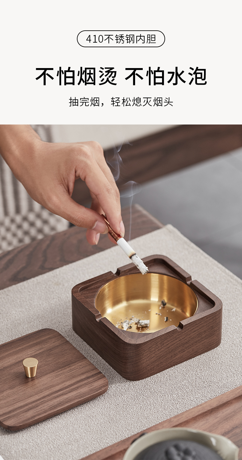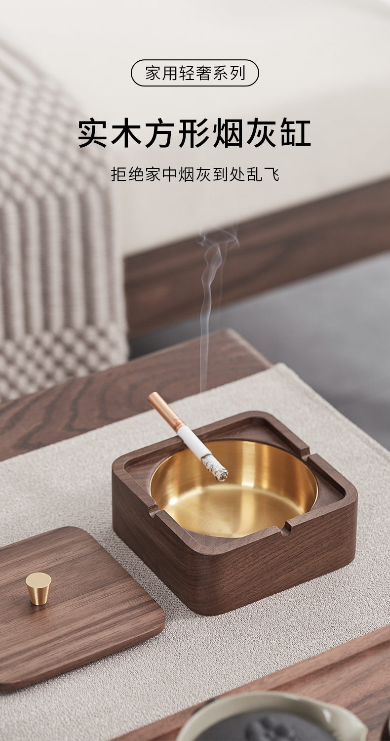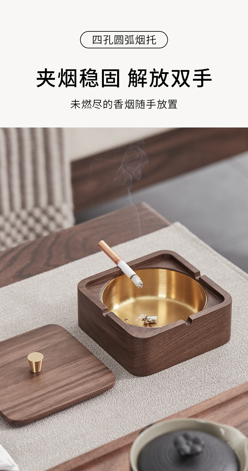 初心| 实木烟灰缸榉木黑胡桃木不锈钢