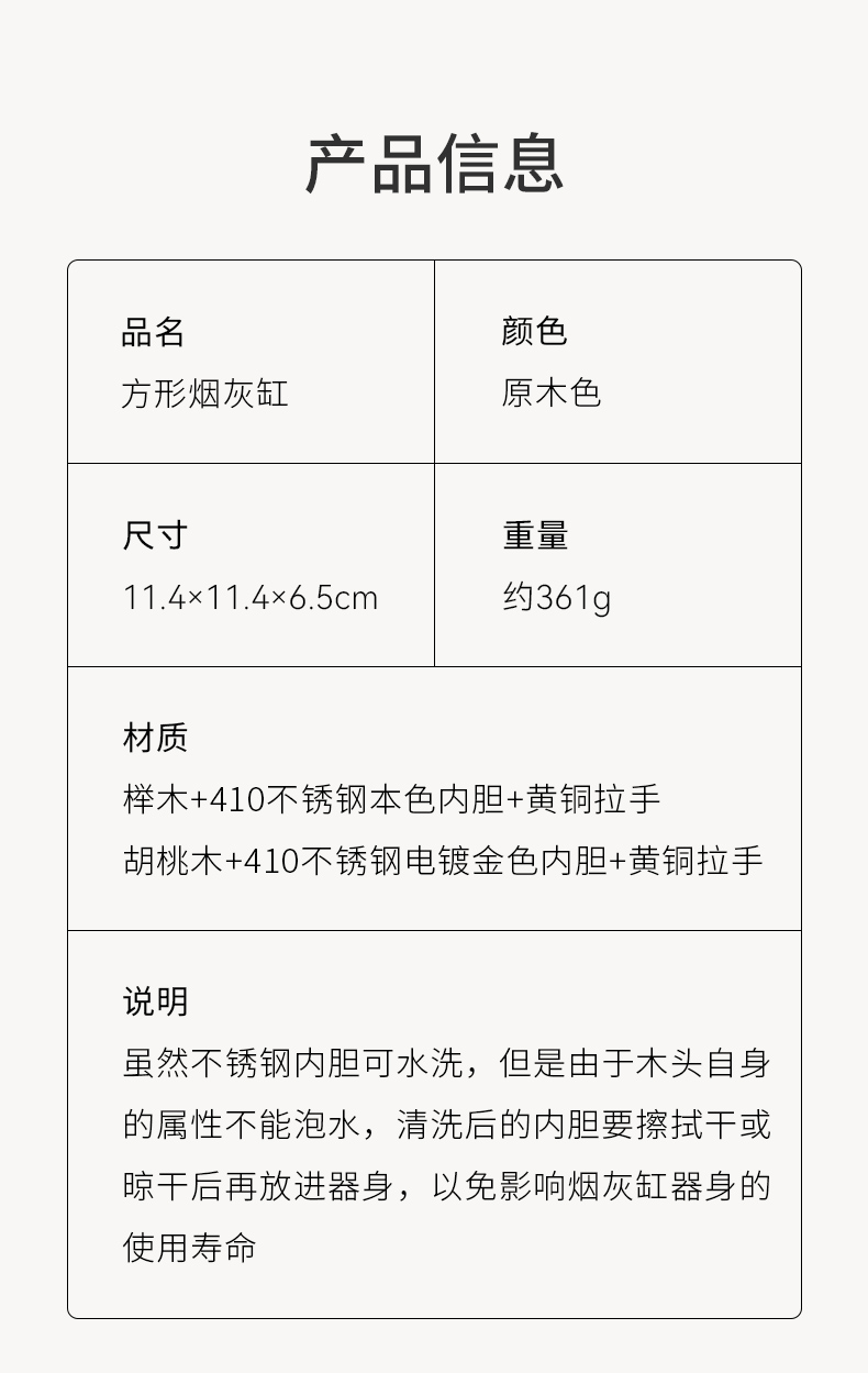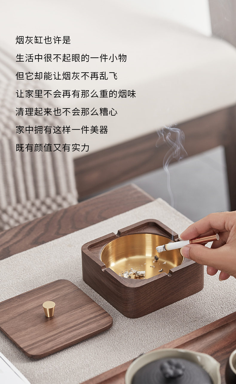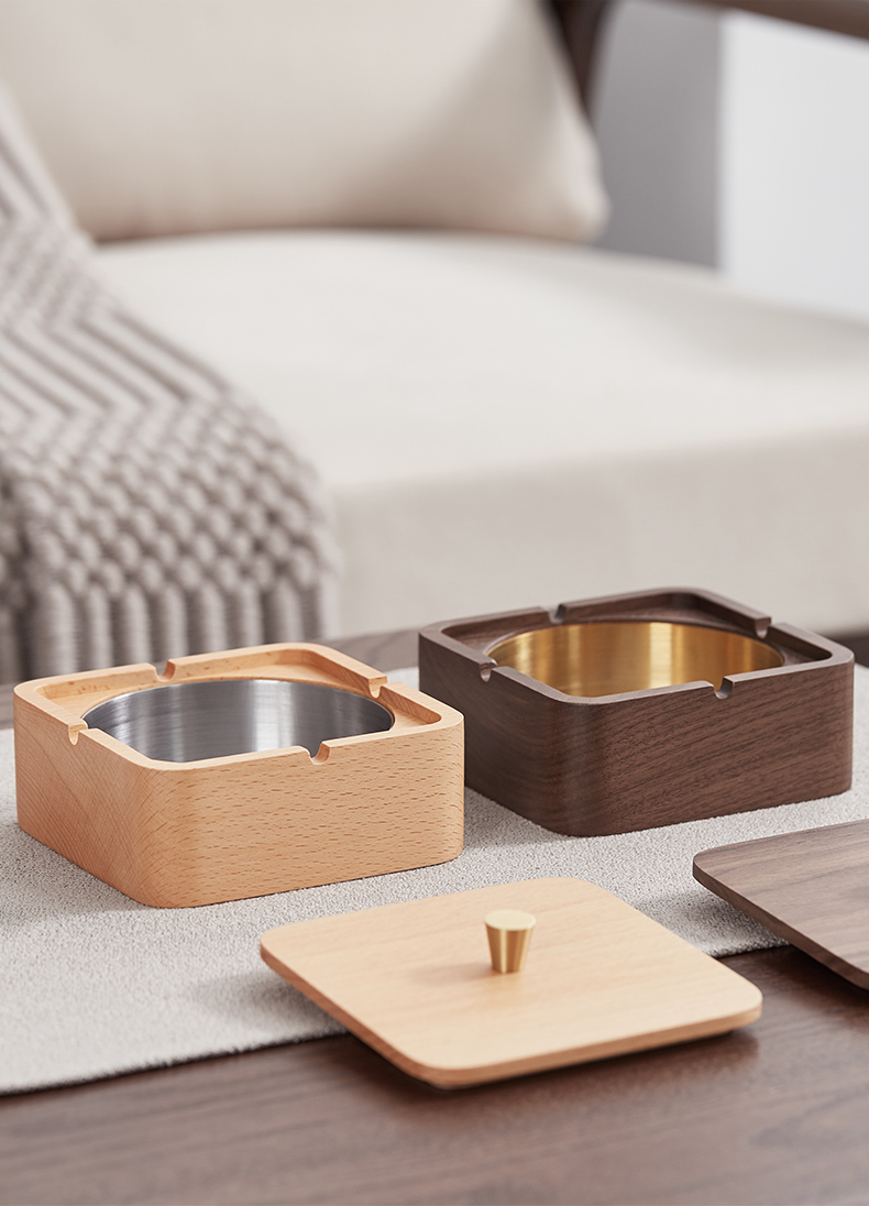 初心| 实木烟灰缸榉木黑胡桃木不锈钢