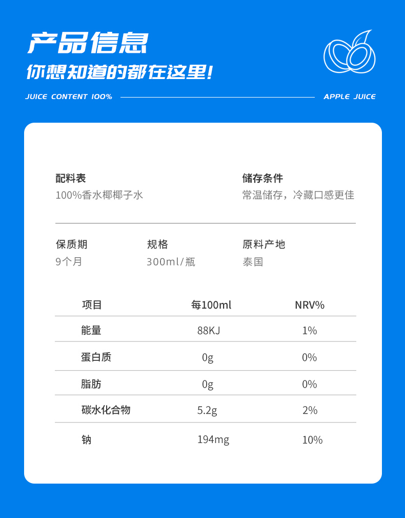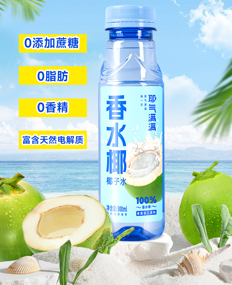 【菜菜】耶气满满 300ml/瓶 100%椰子水0添加蔗糖电解质水泰国香水椰孕妇石榴汁