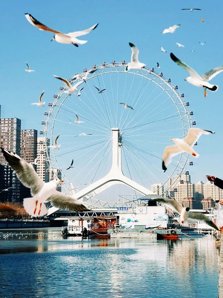 远观观天津的地标性建筑,直径高达110米,世界级的桥上摩天轮【天津之眼】,体现那“天门常开,彩虹初现”神奇境界。天津baibai门跳水的【狮子林桥】。