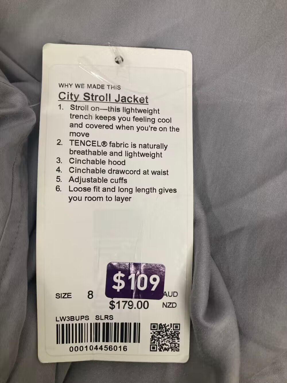 瑕疵Lululemon City Stroll 女士轻便透气束腰宽松中长款抽绳连帽外套