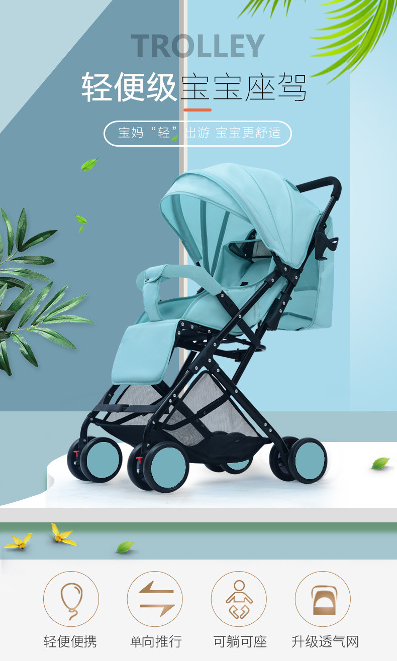 【婴儿车】超轻便婴儿推车易携带可坐可躺三折叠带拉杆可上飞机bb手推车