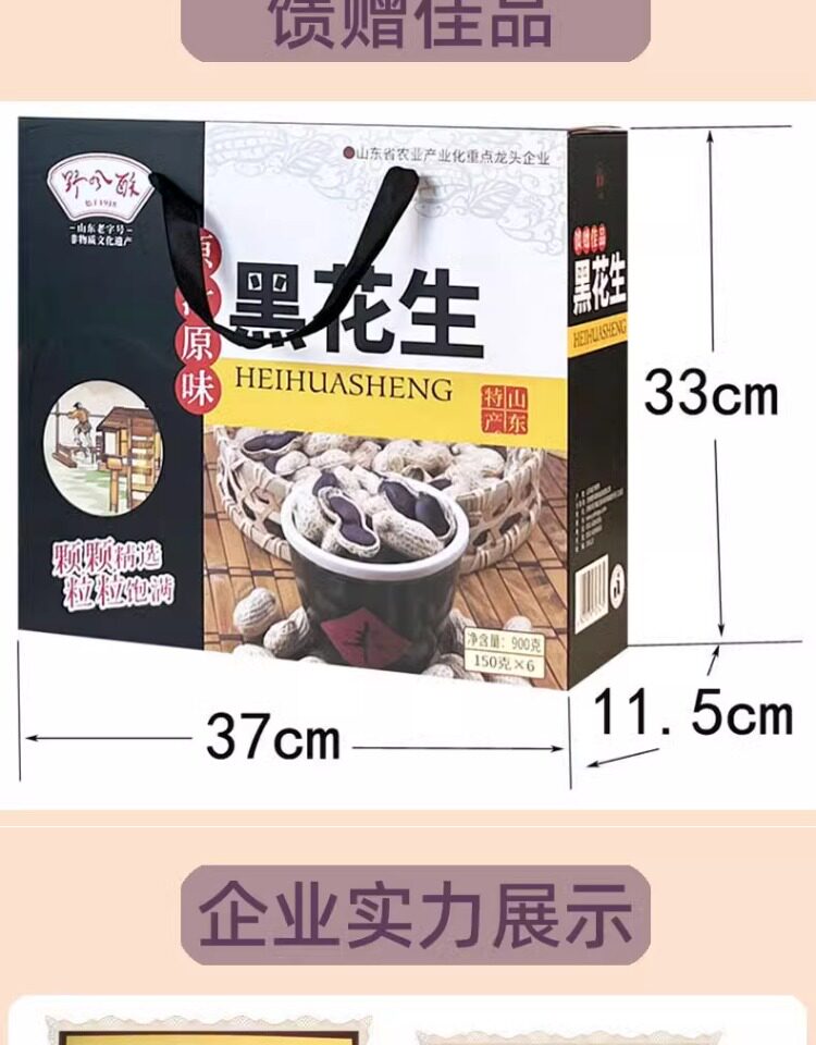 野风酥山东特产黑花生礼盒装900g 正宗黑皮带壳原味五香新货
