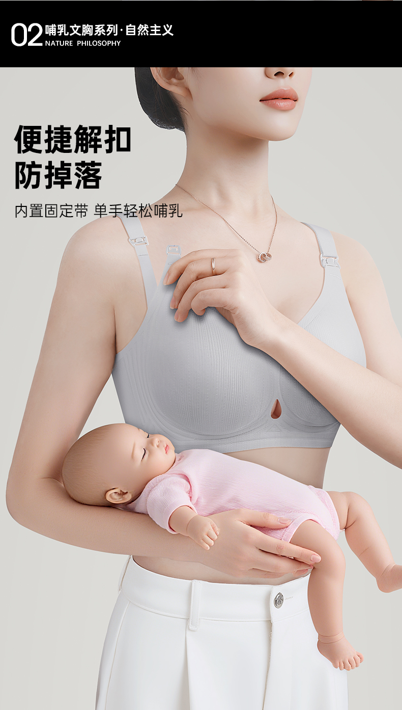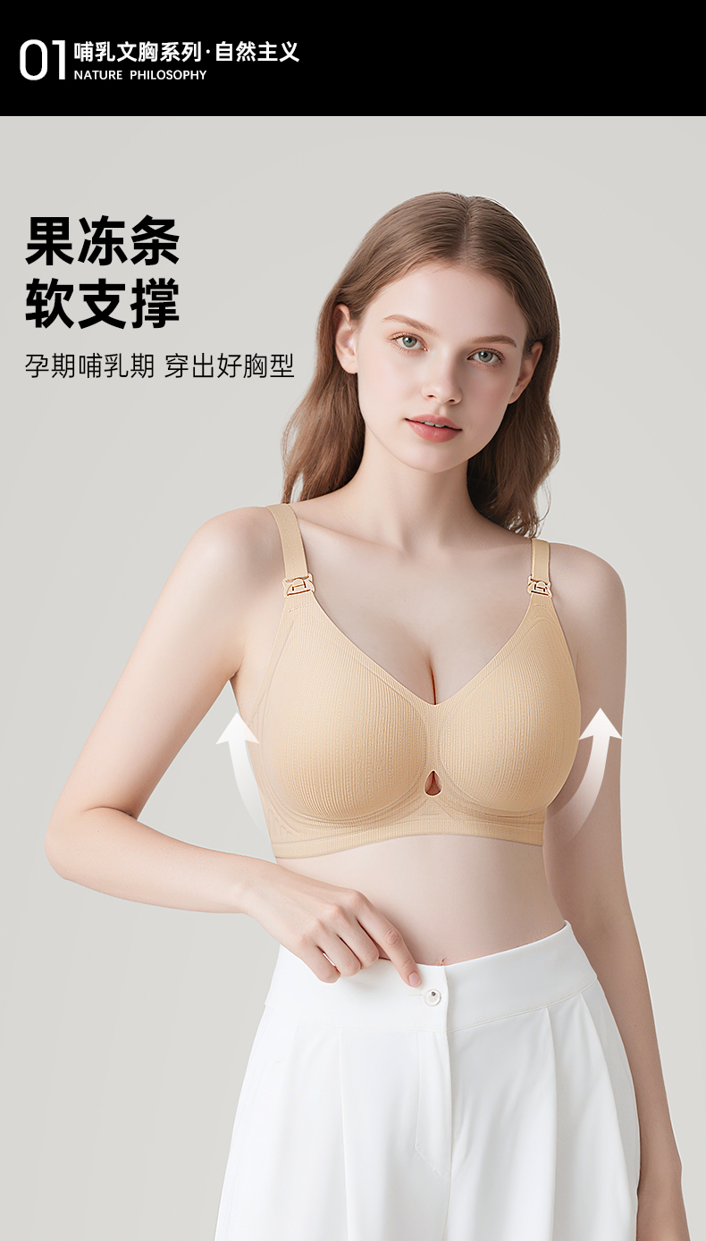 D1-【B-C杯】润微孕妇哺乳内衣夏季薄怀孕期专用产后喂奶文胸聚拢防下垂收副乳 乐哺悦心/花枝夕语