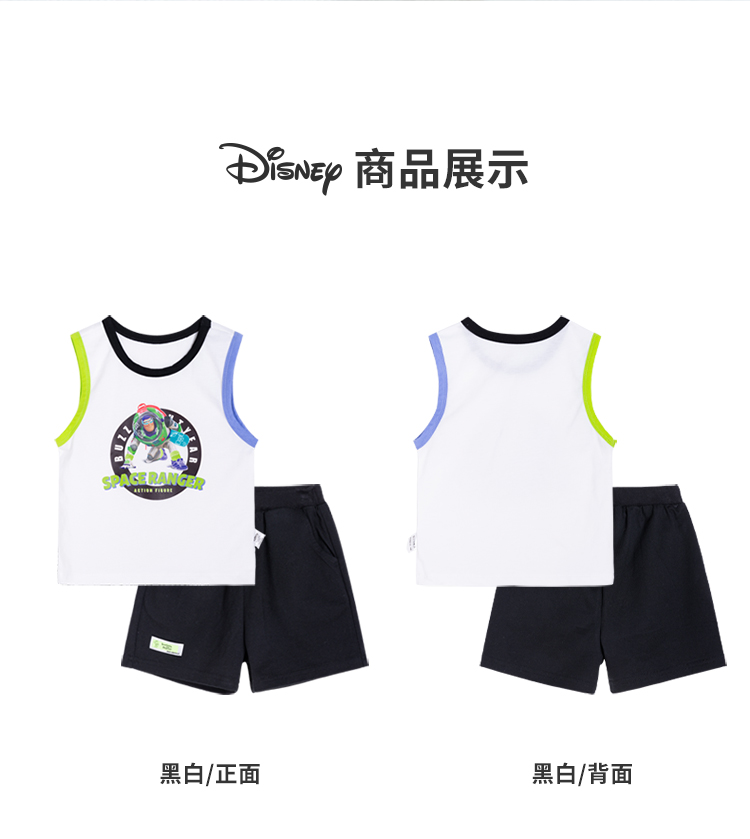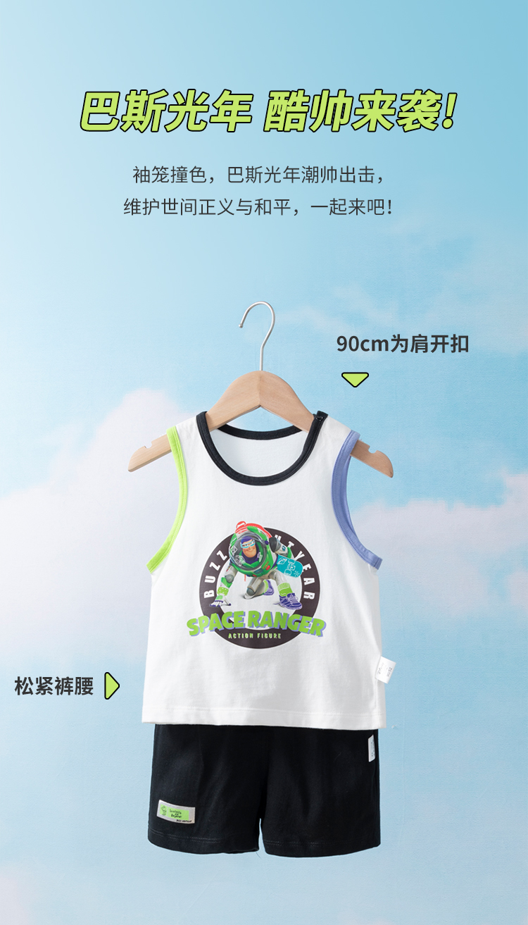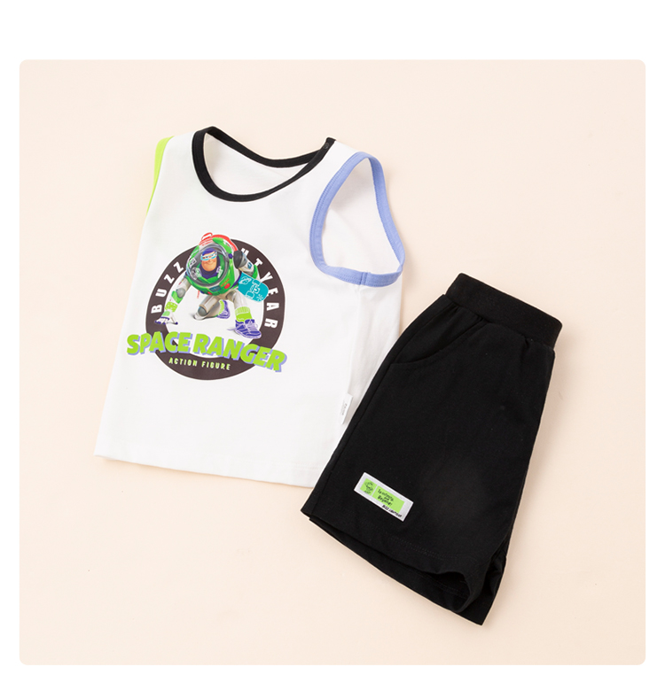 迪士尼童装 巴斯光年印花休闲背心套装夏季新款撞色时尚上衣短裤