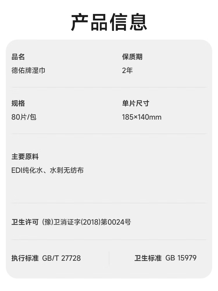 【积分兑换】德佑新升级纯水湿巾80片/包*6