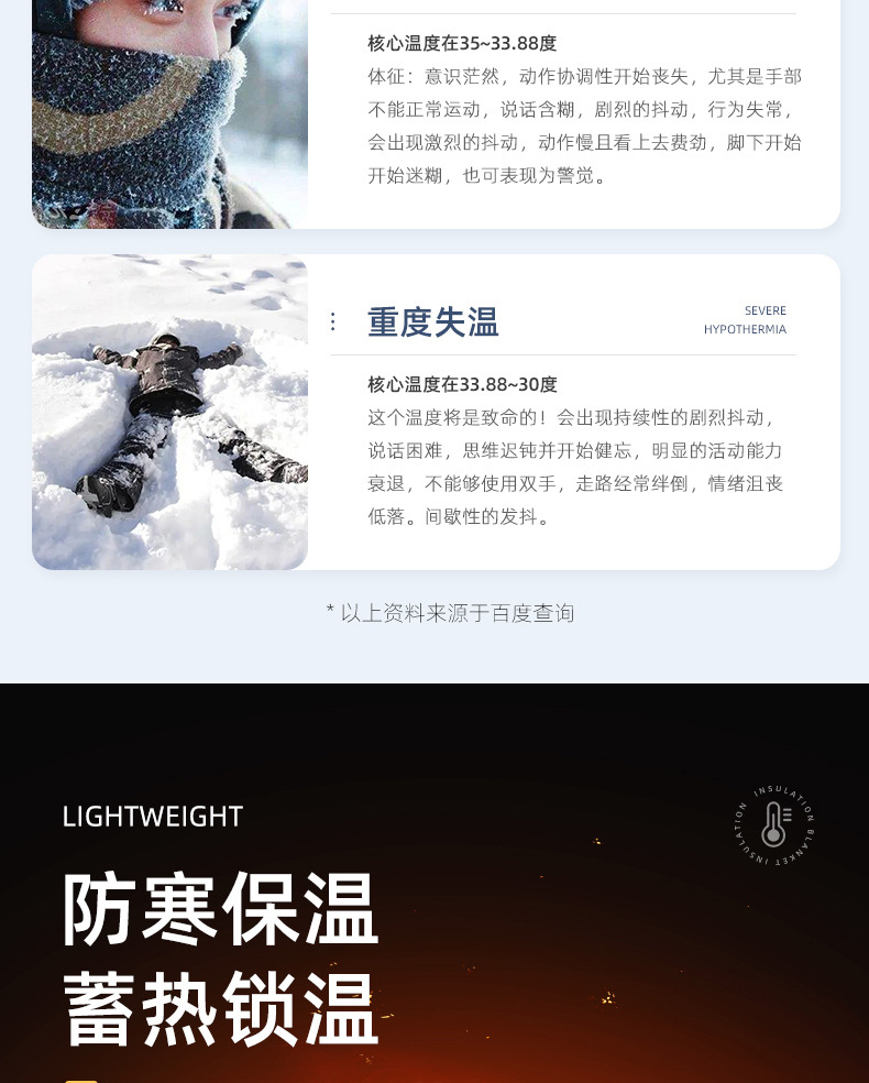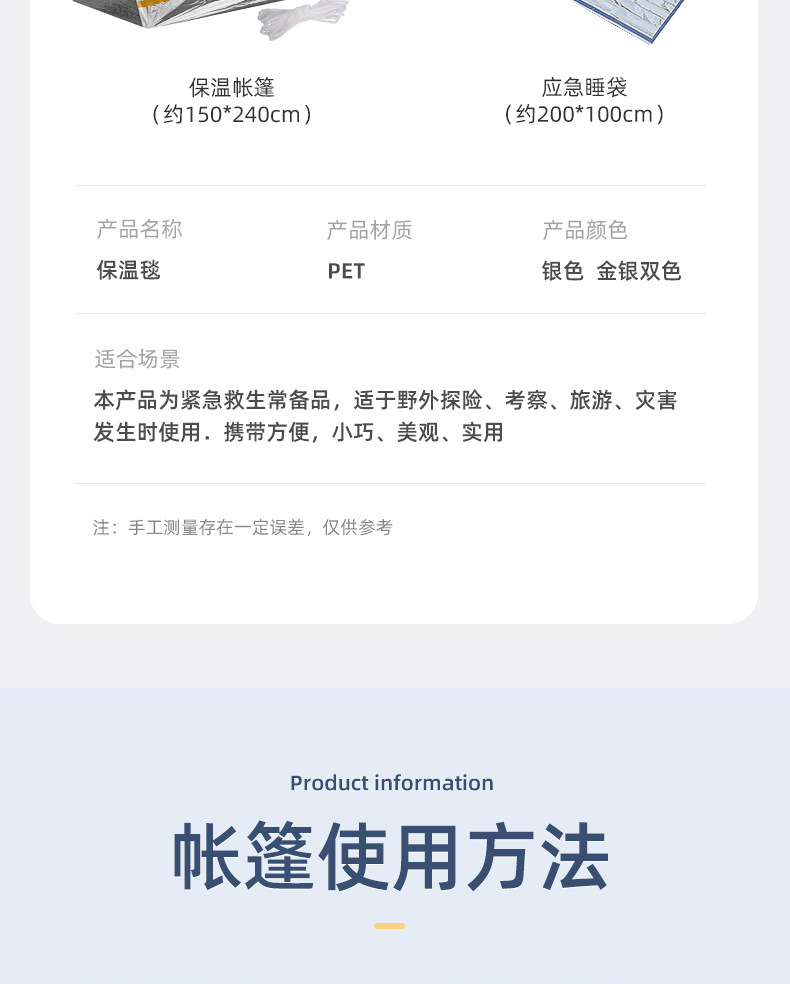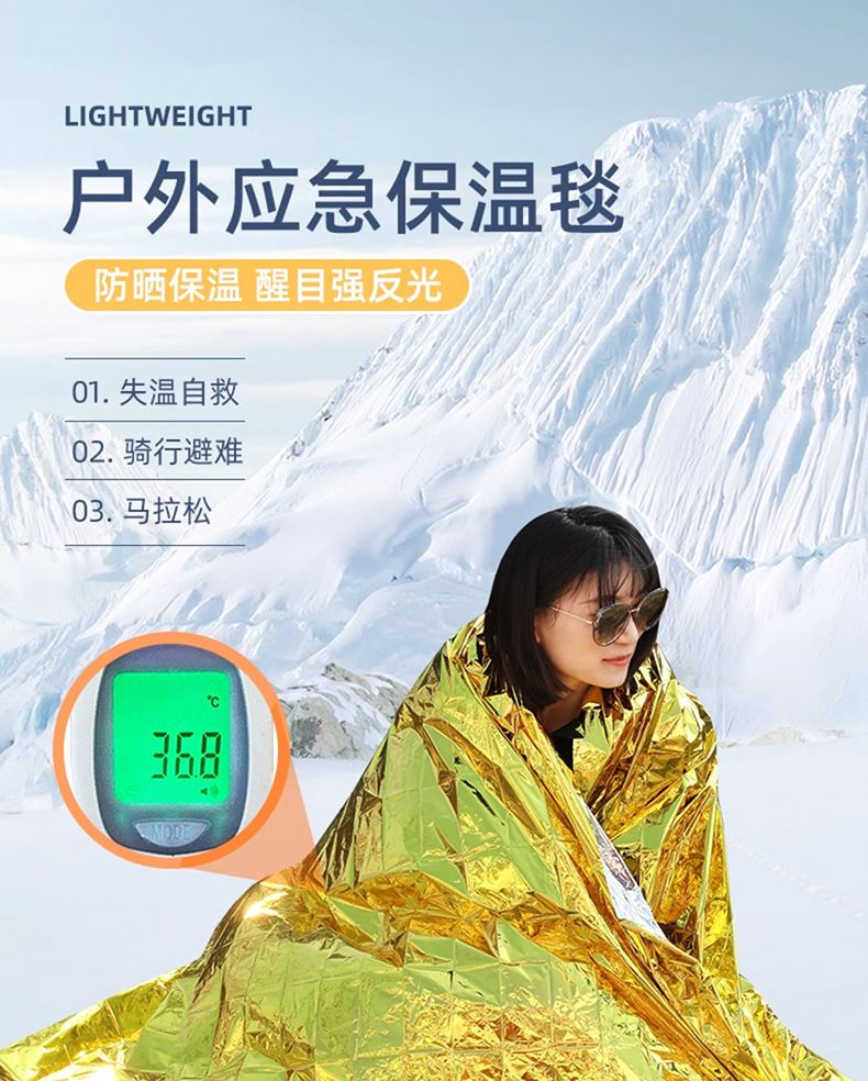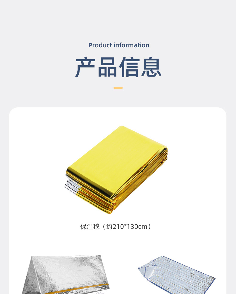 露营户外保温毯 野外求生急救毯睡袋帐篷保暖防寒生存装备失温应急毯子1块