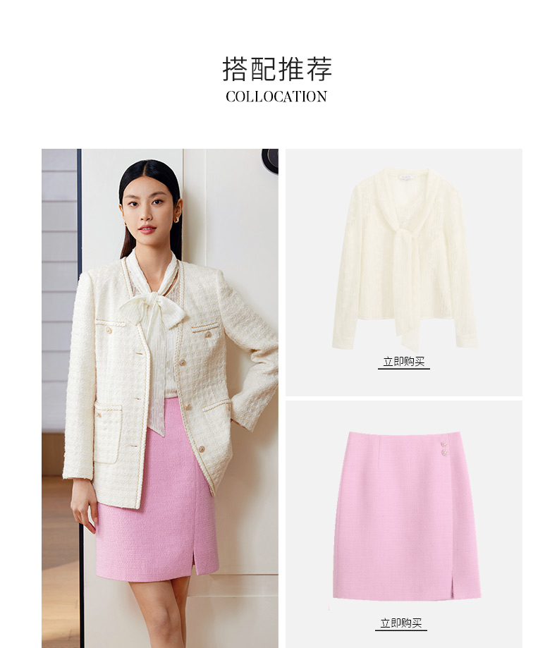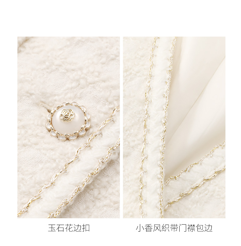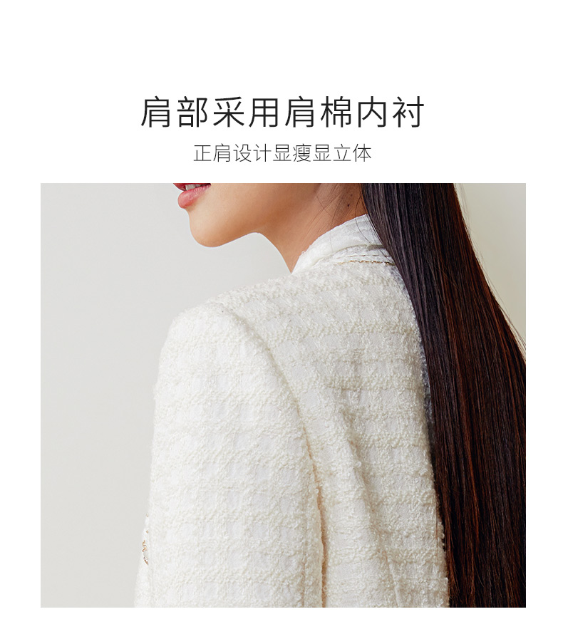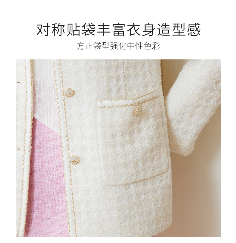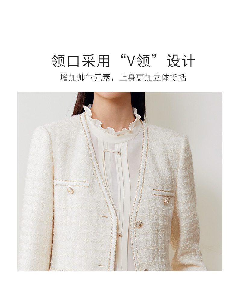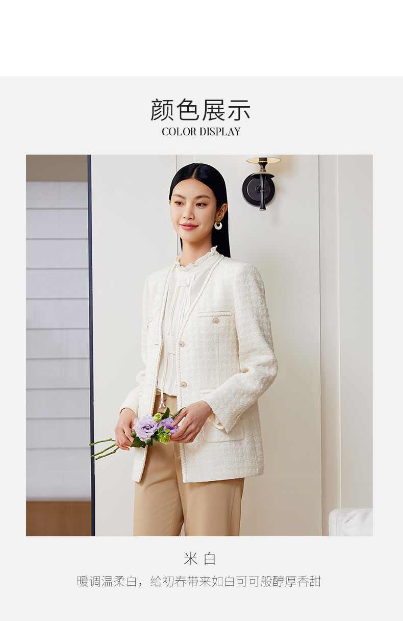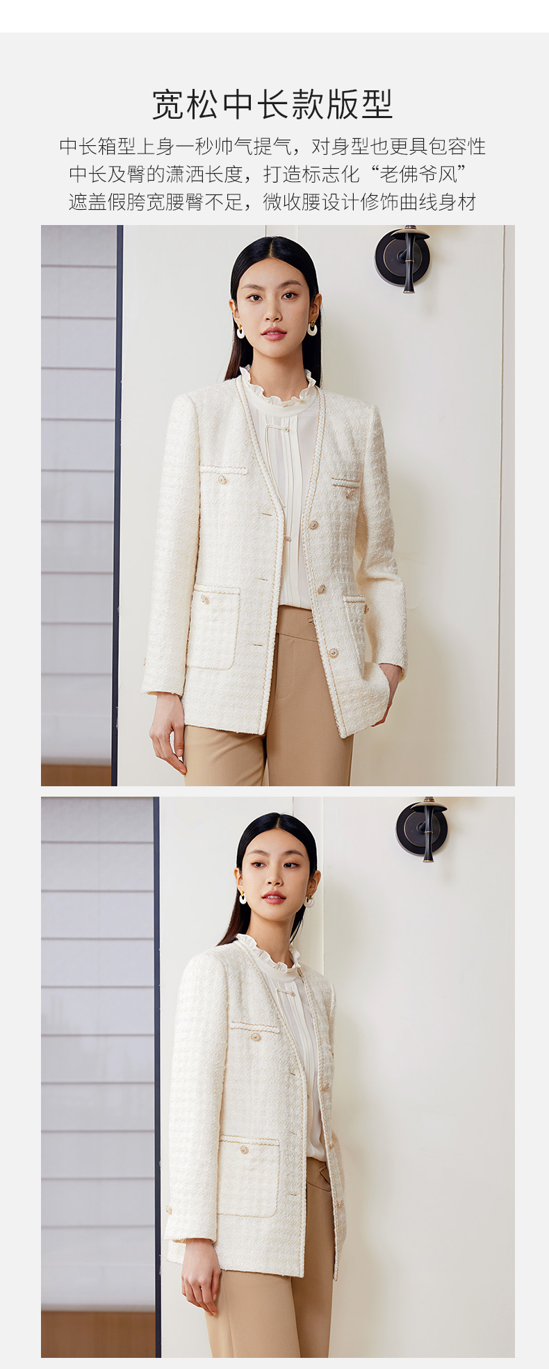 玳莎小香风毛呢外套女2024年春季新款职场通勤宽松V领中长款大衣 EA37301
