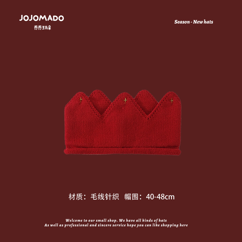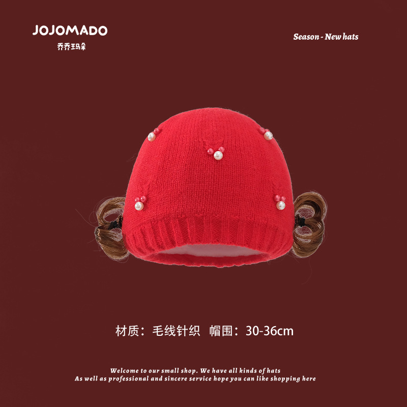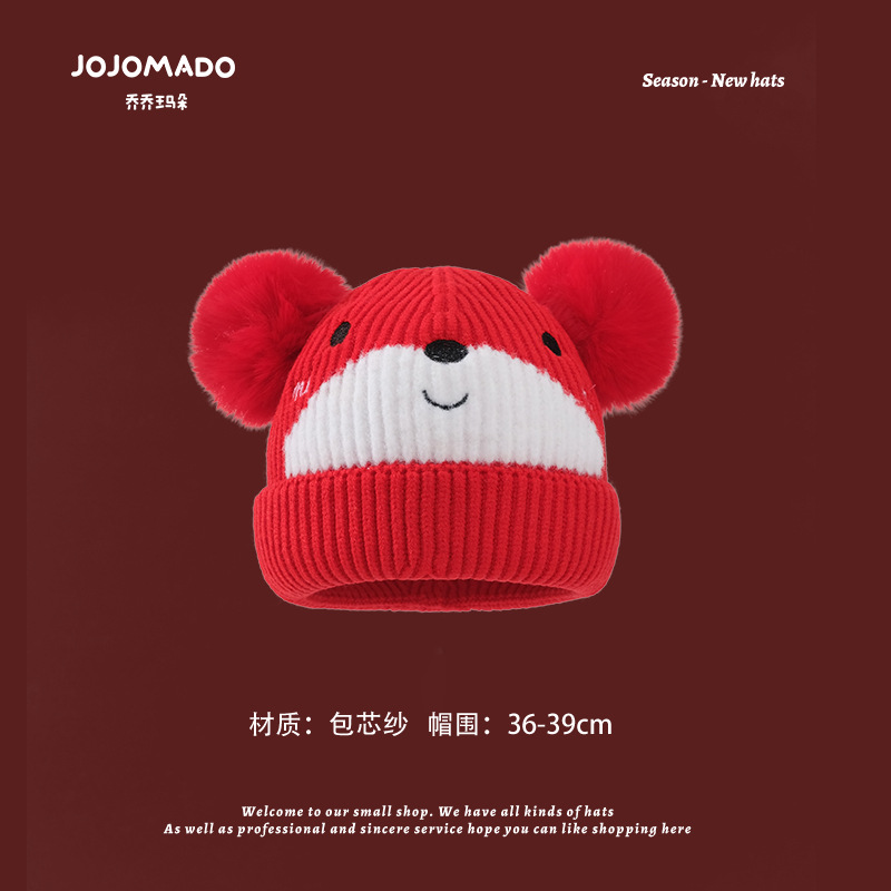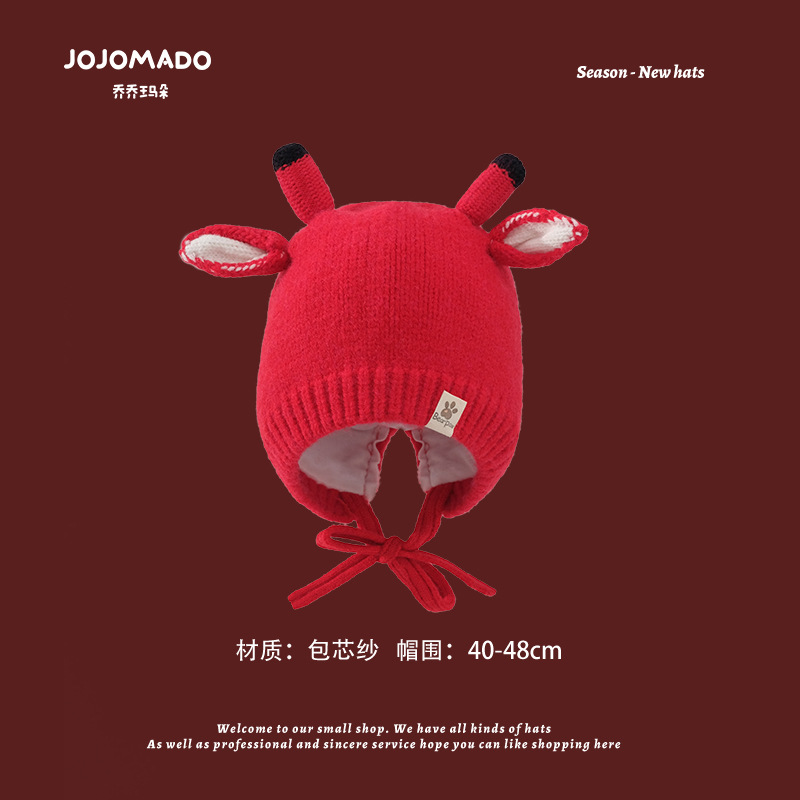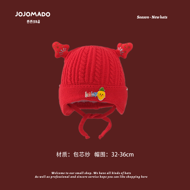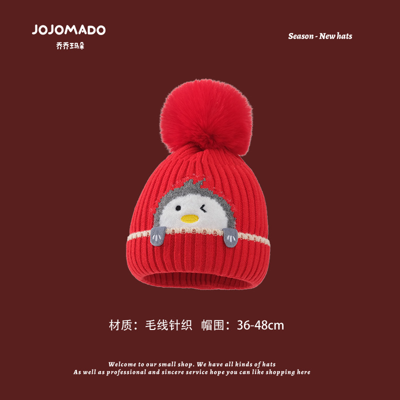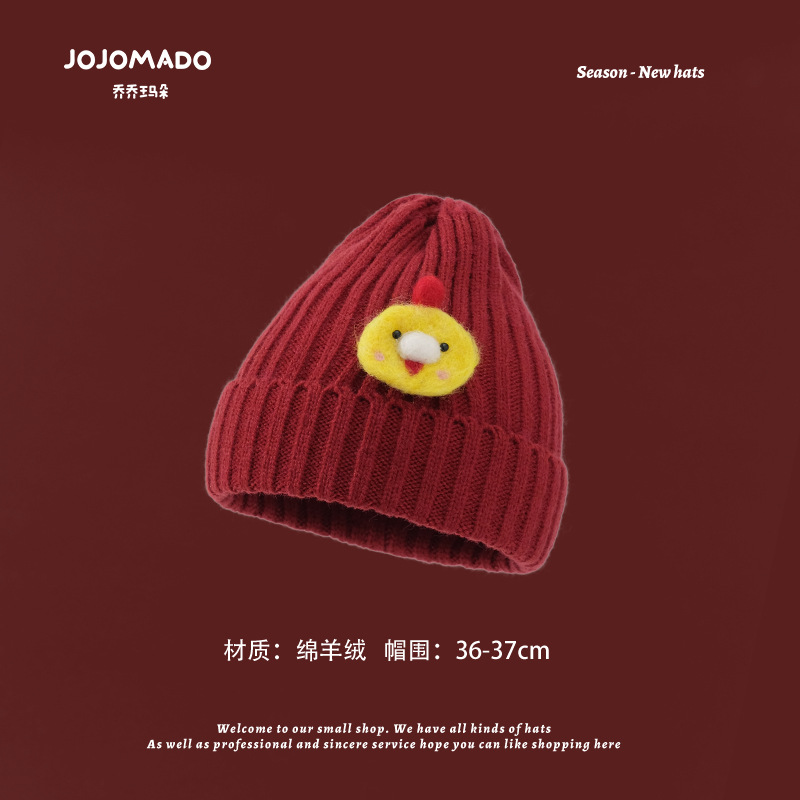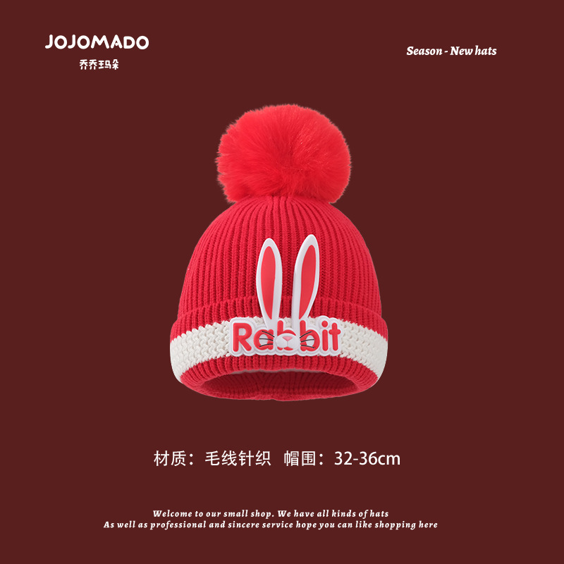 【新年宝宝红色针织帽】儿童喜庆红色时尚毛线帽男女童小孩新年针织洋气个性圣诞帽潮
