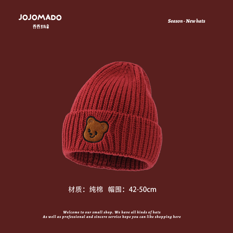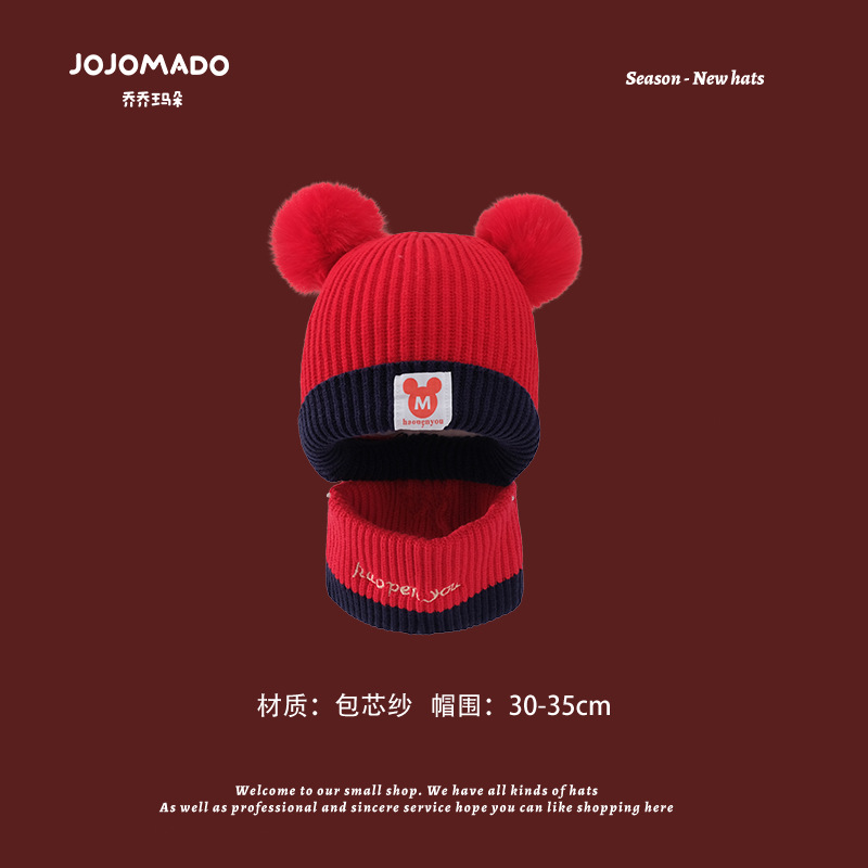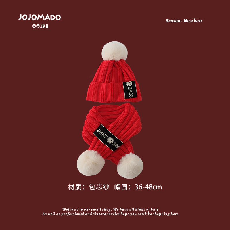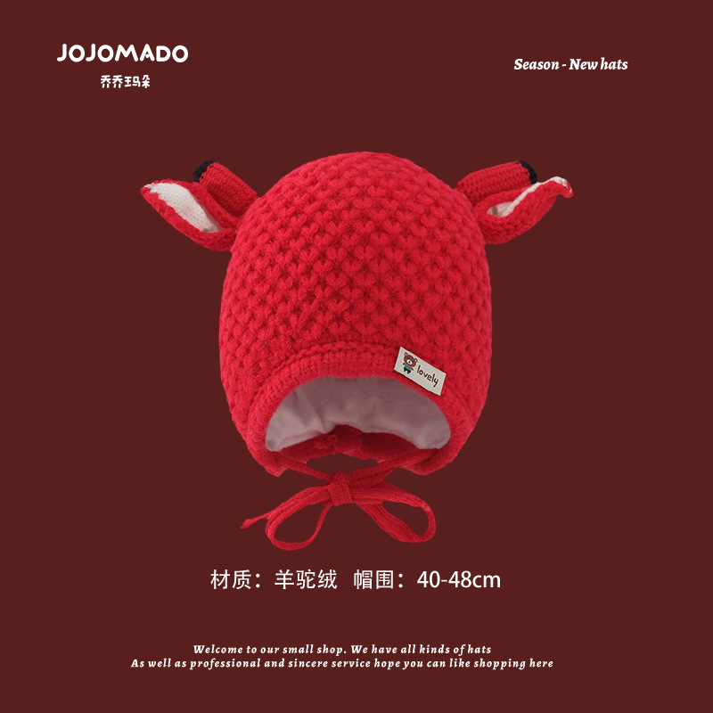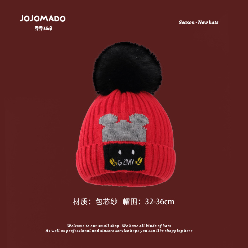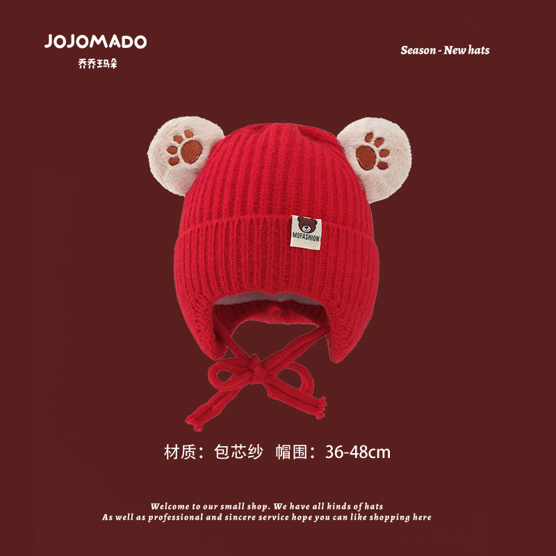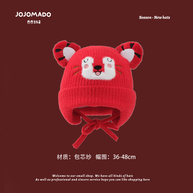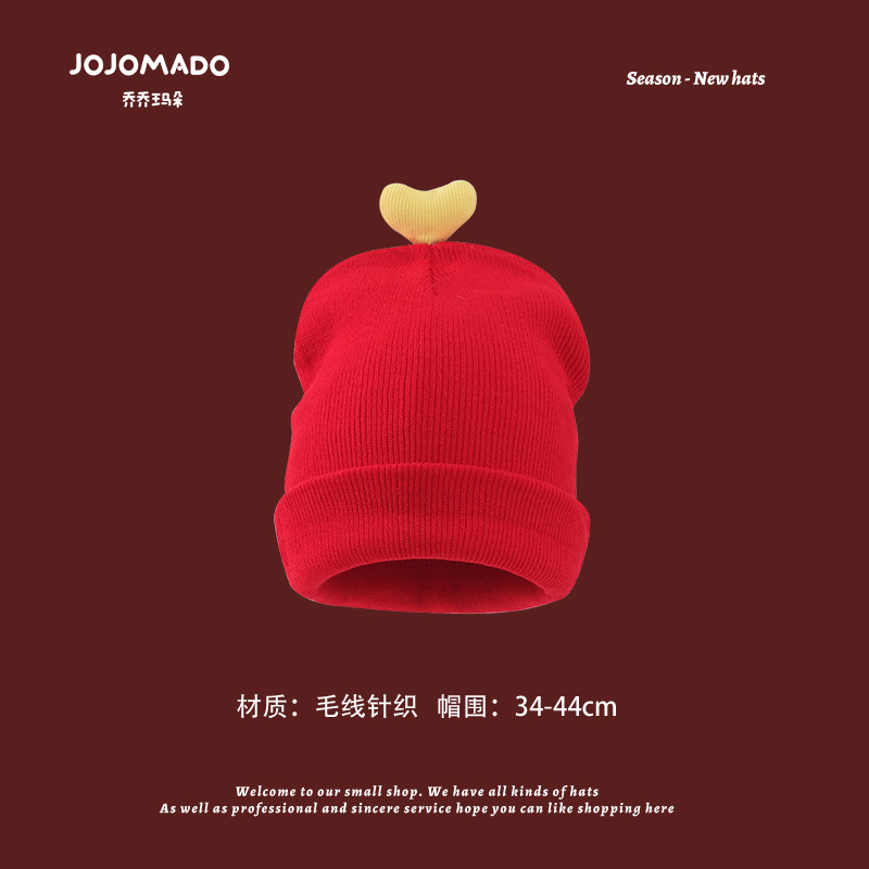 【新年宝宝红色针织帽】儿童喜庆红色时尚毛线帽男女童小孩新年针织洋气个性圣诞帽潮