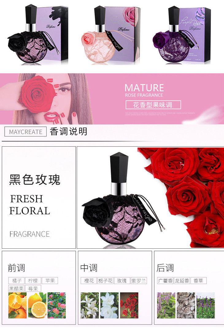 【女士香水】奇美香水午夜玫瑰蕾丝持久淡香QIMEI香水100ml花香大容量香水