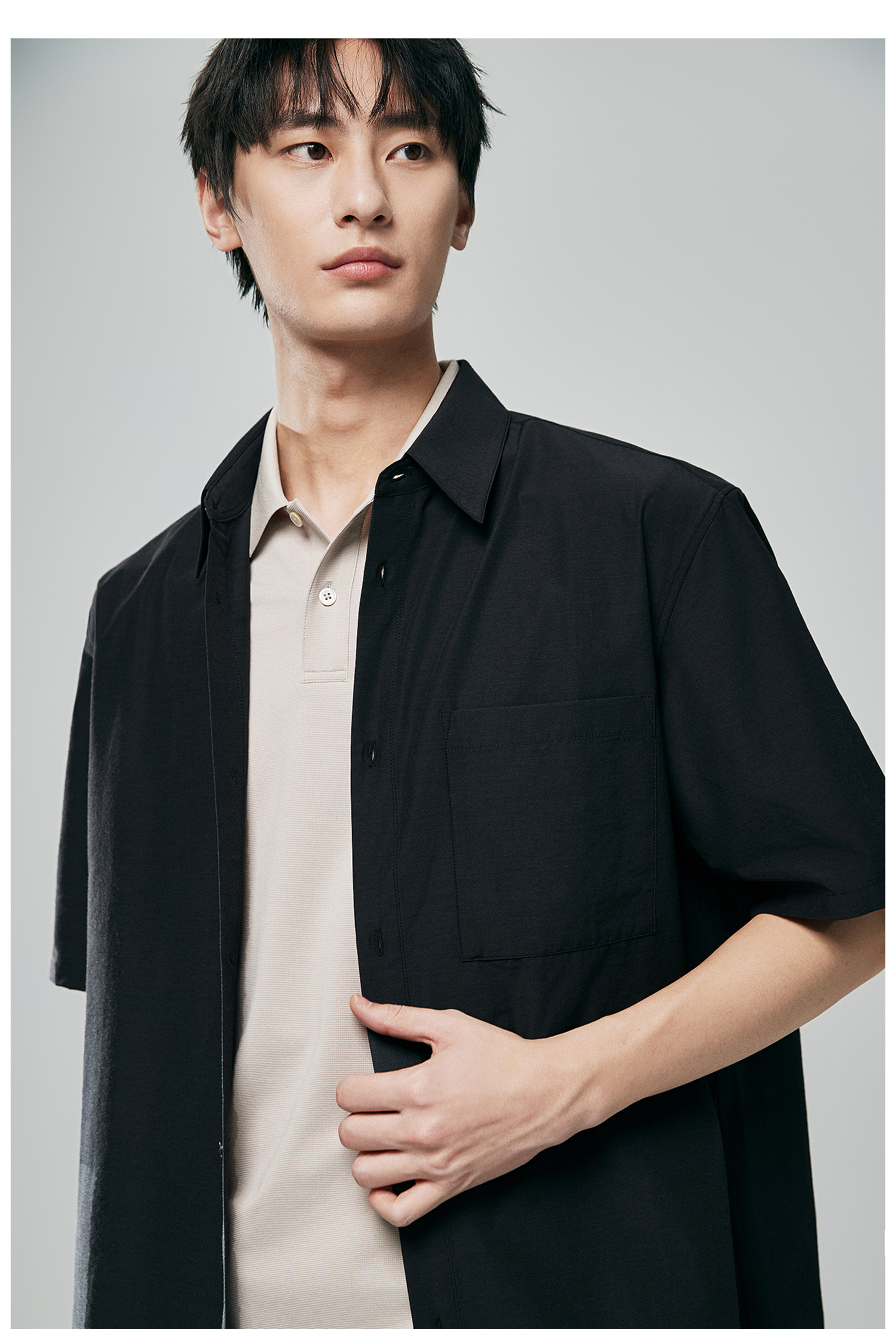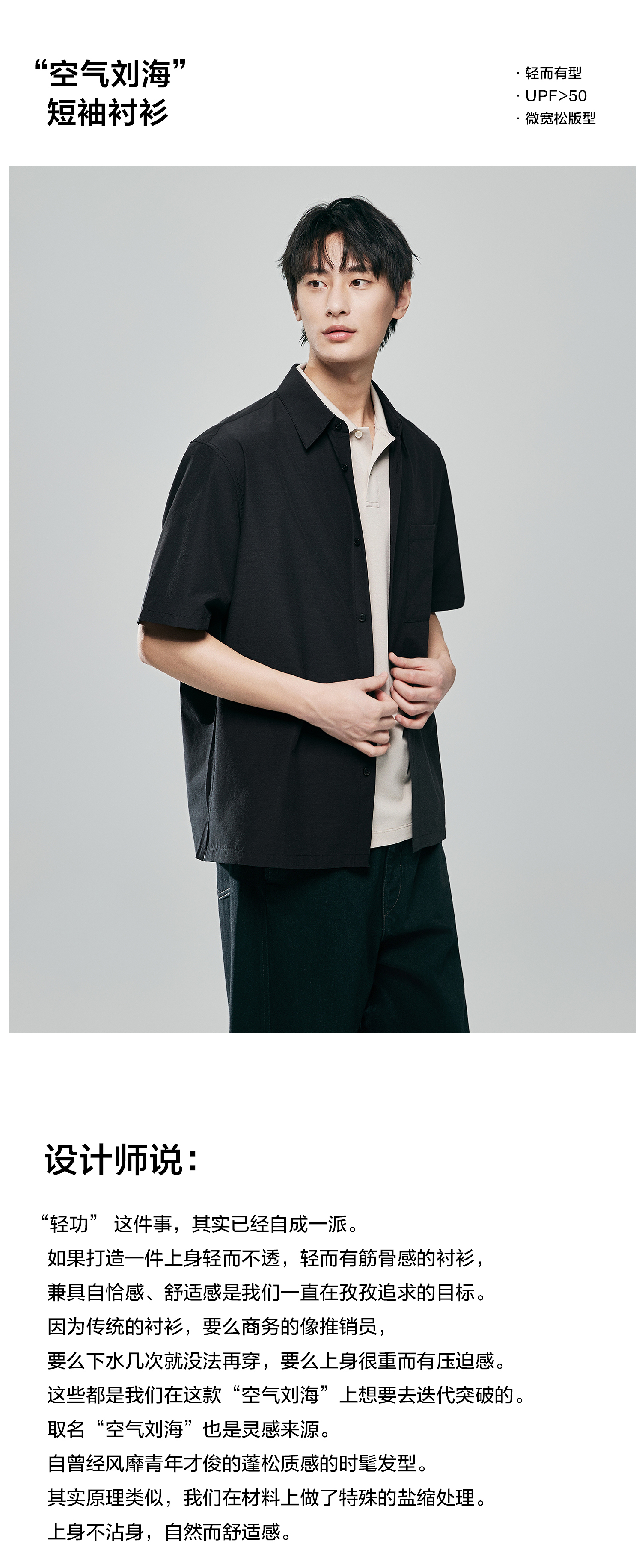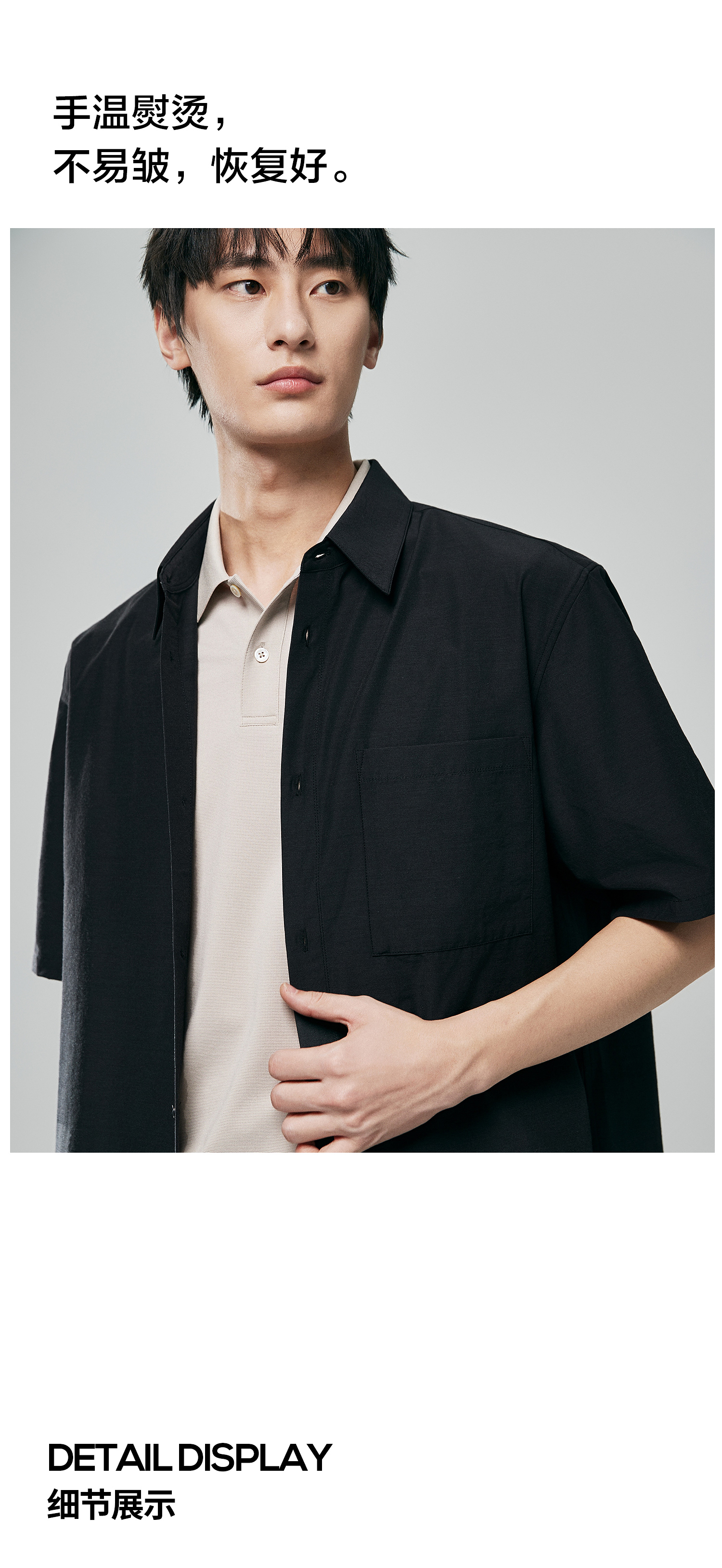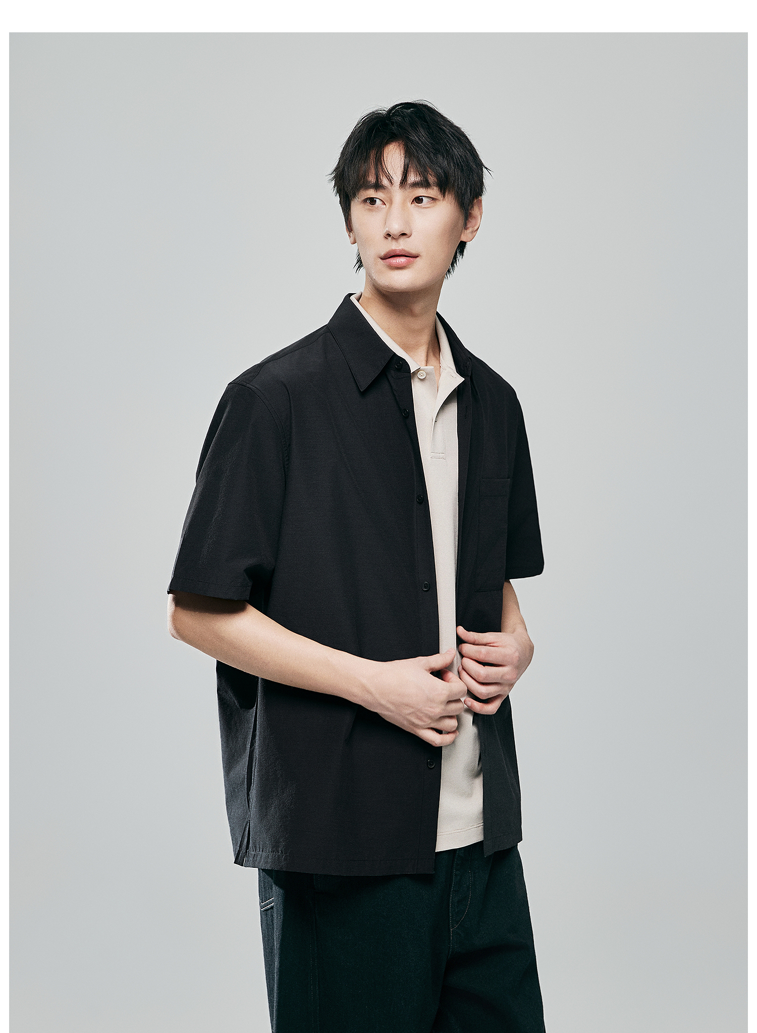 棉仓363804002-微宽松“空气刘海”涤棉肌理翻领短袖衬衫