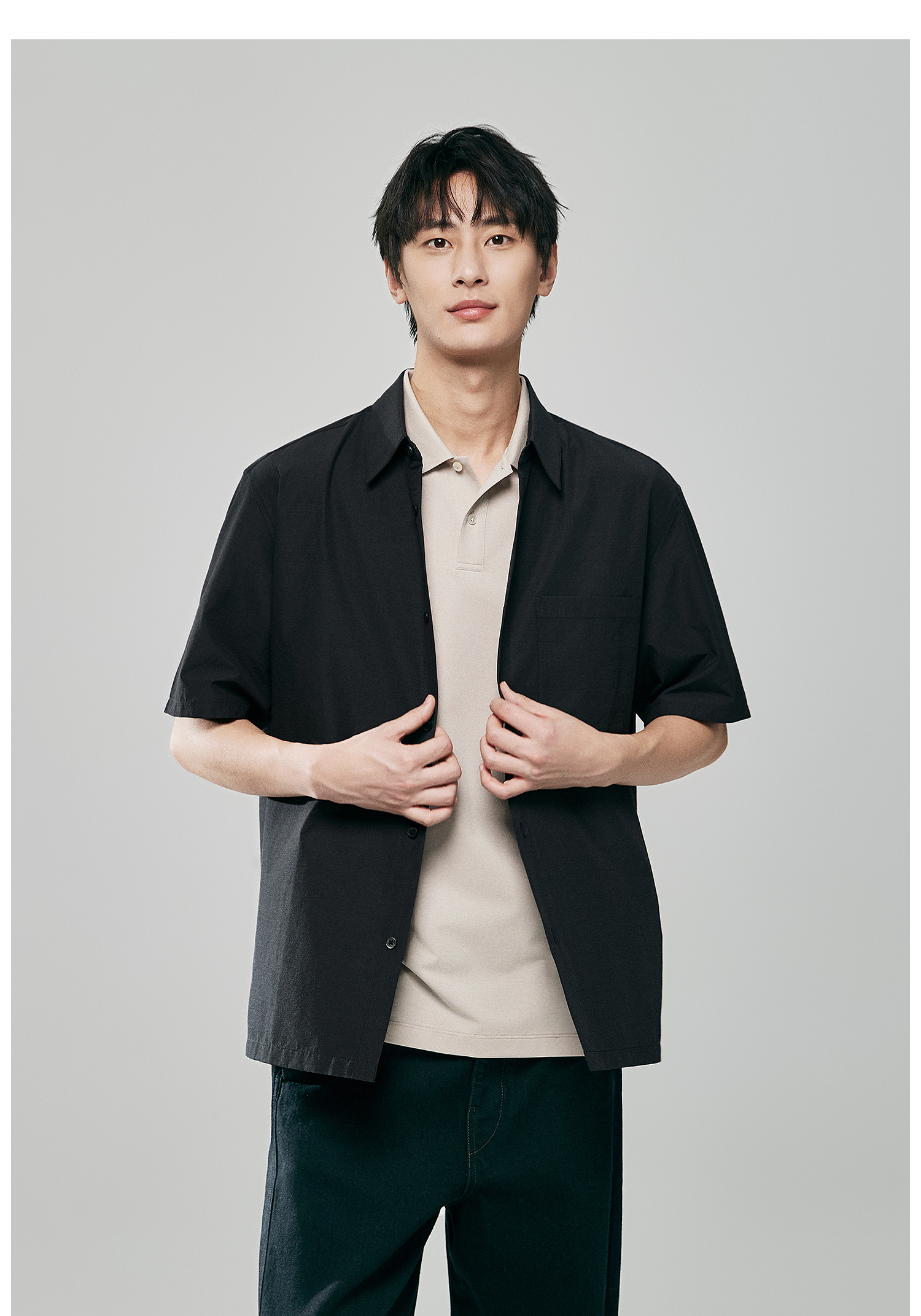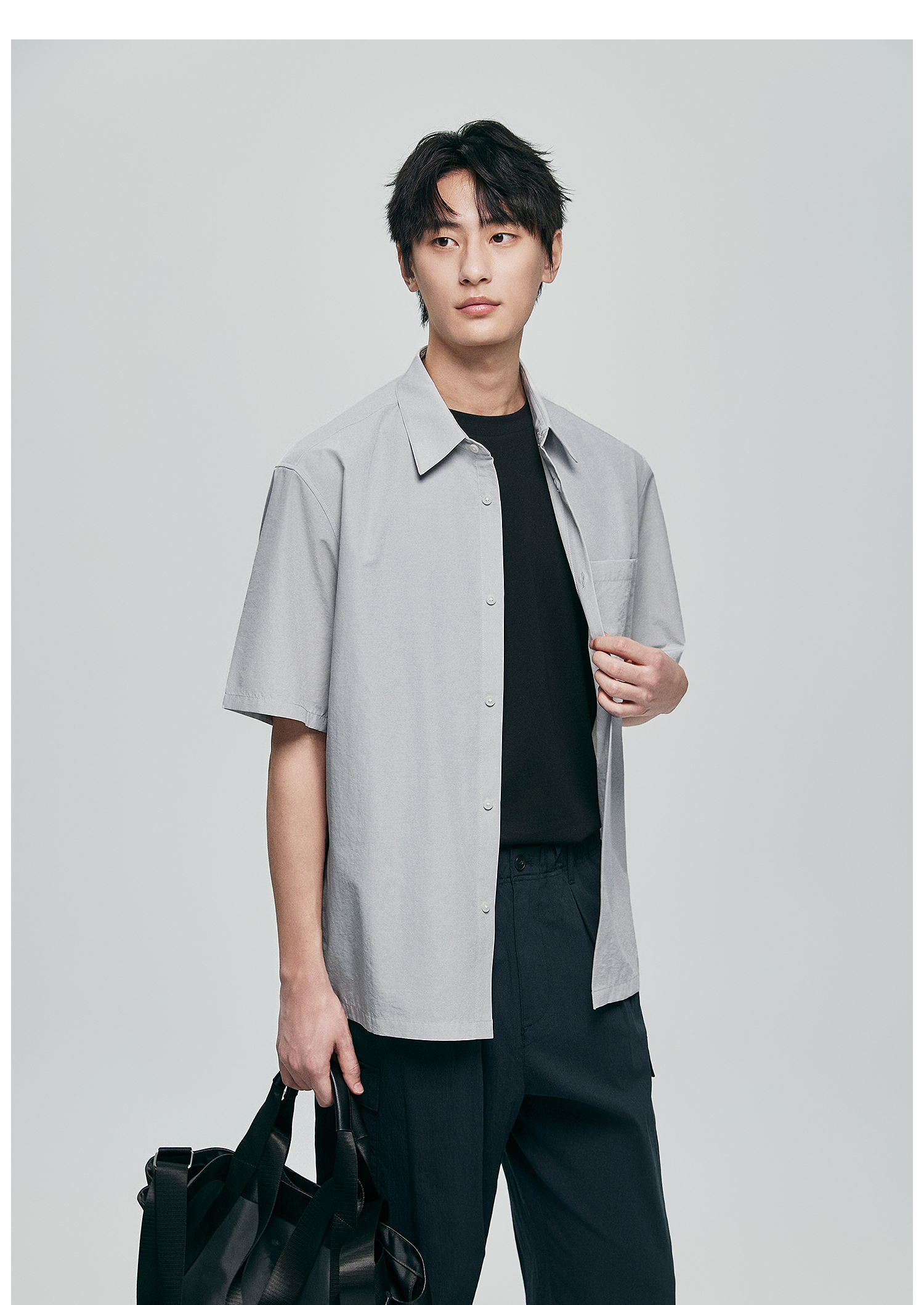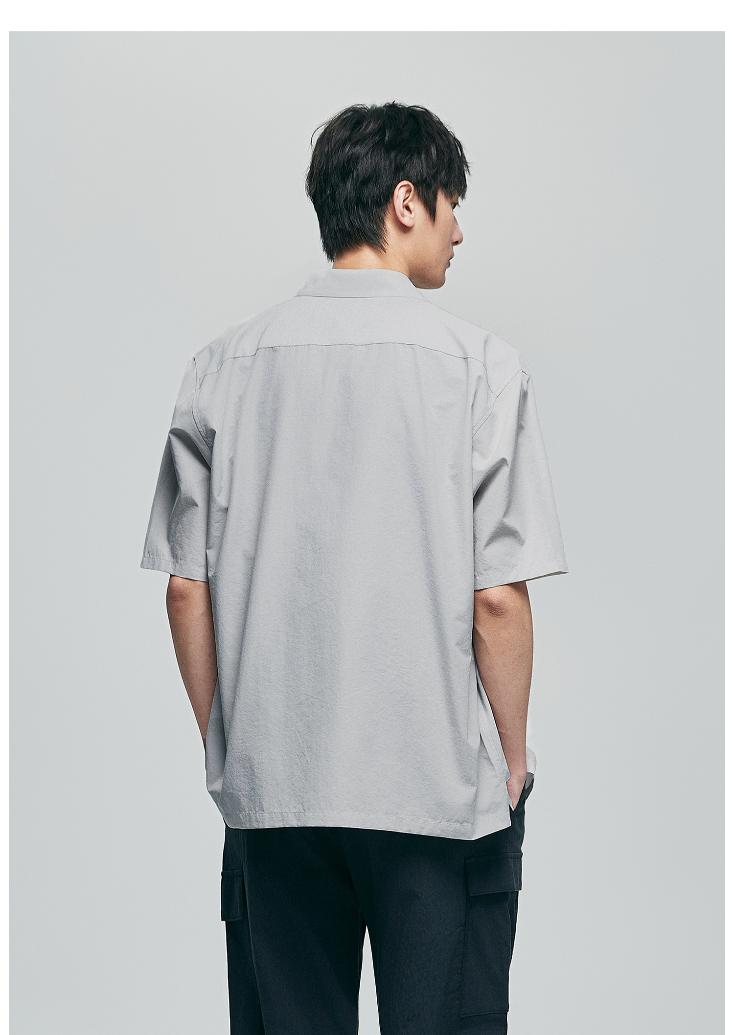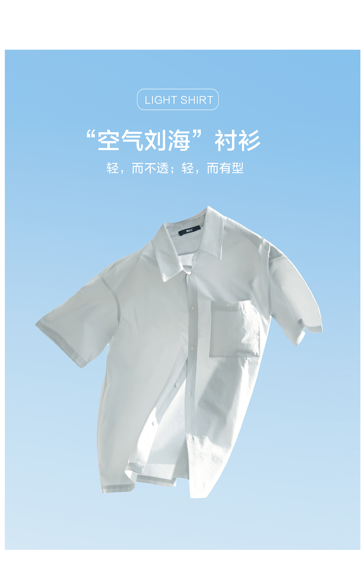 棉仓363804002-微宽松“空气刘海”涤棉肌理翻领短袖衬衫