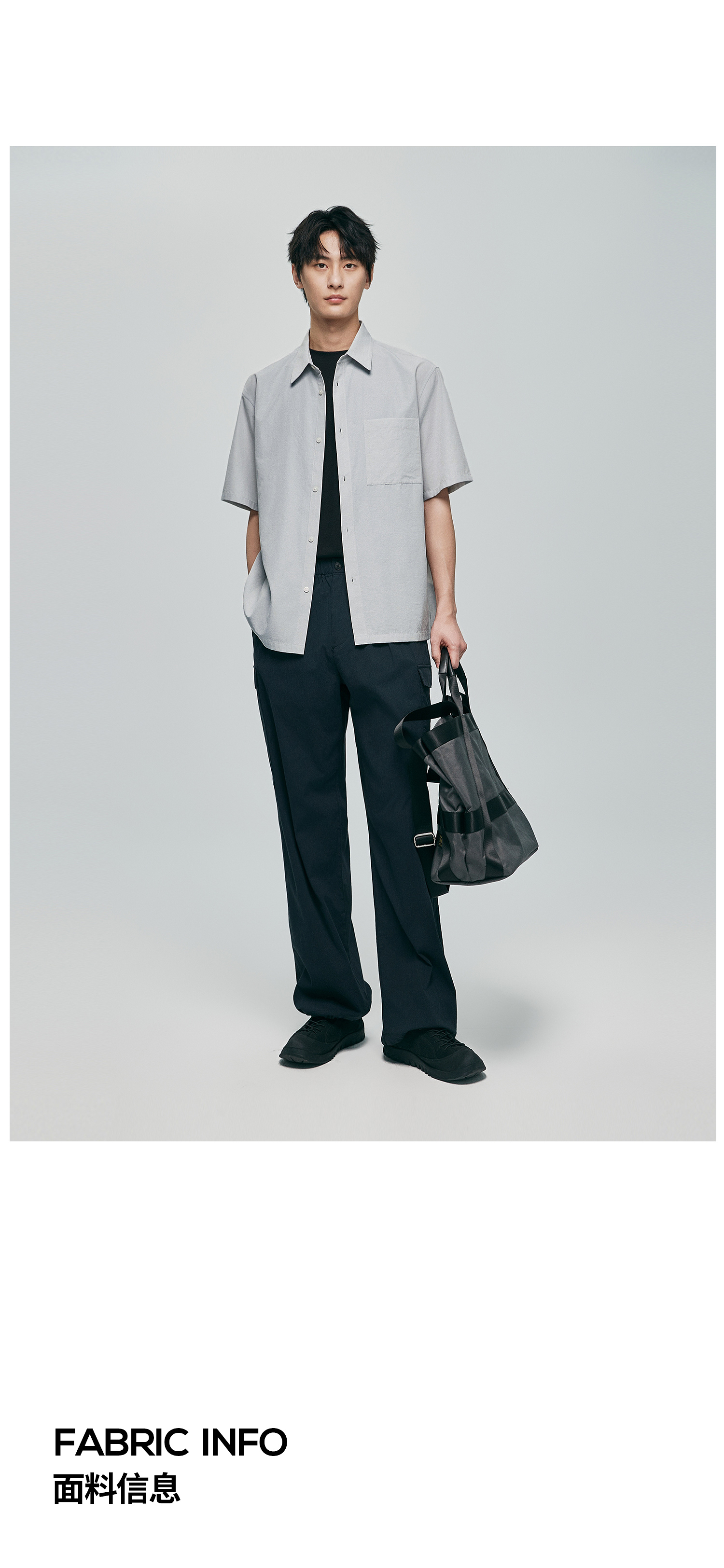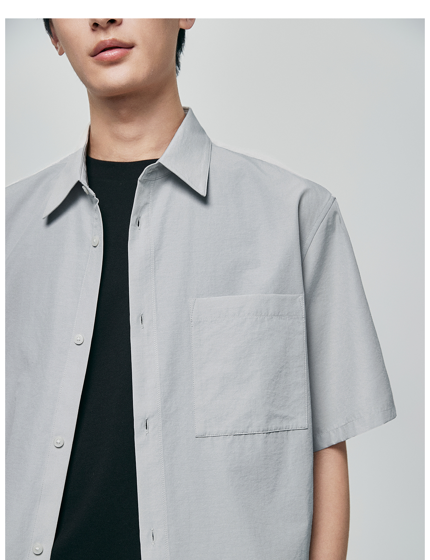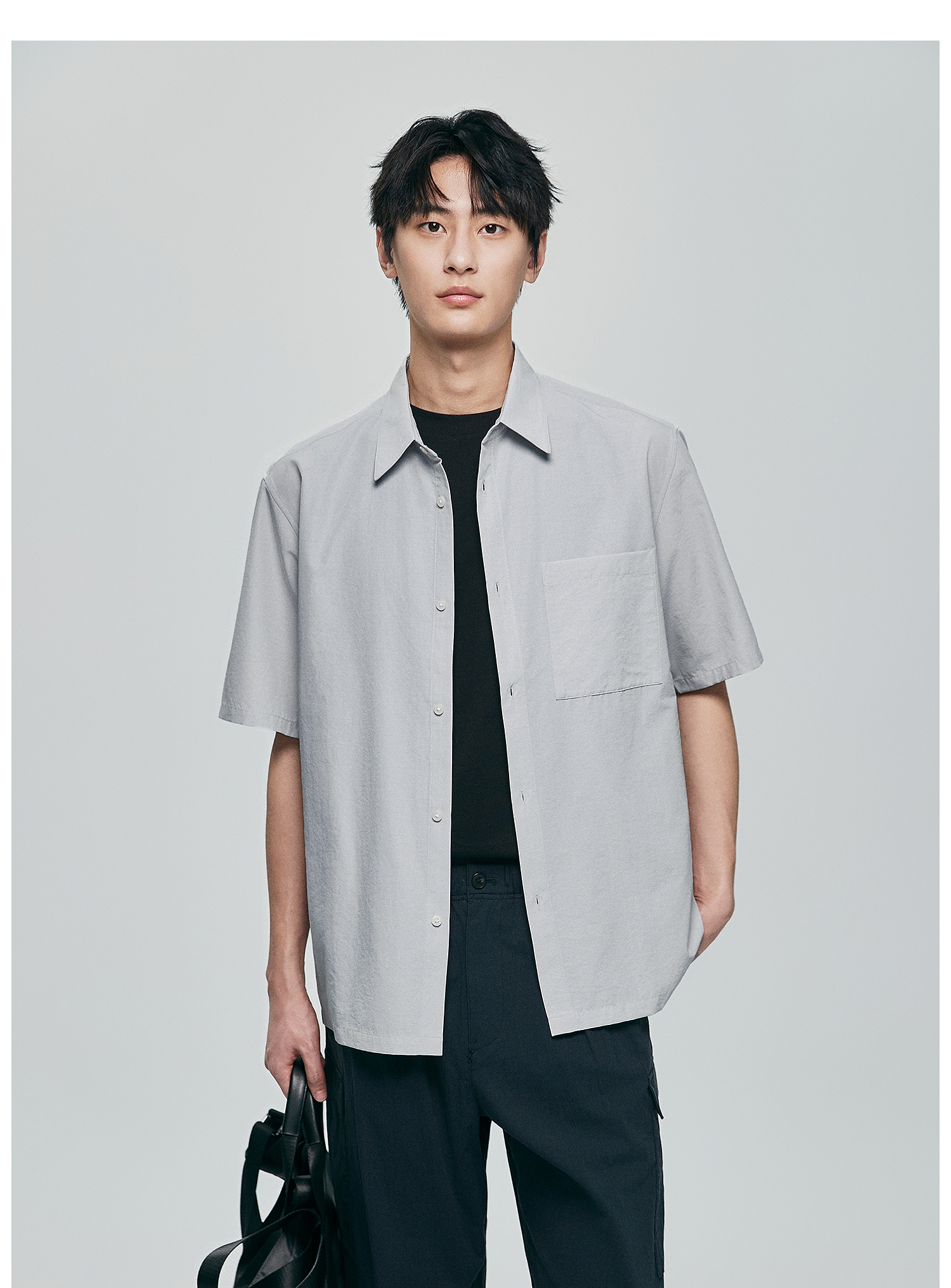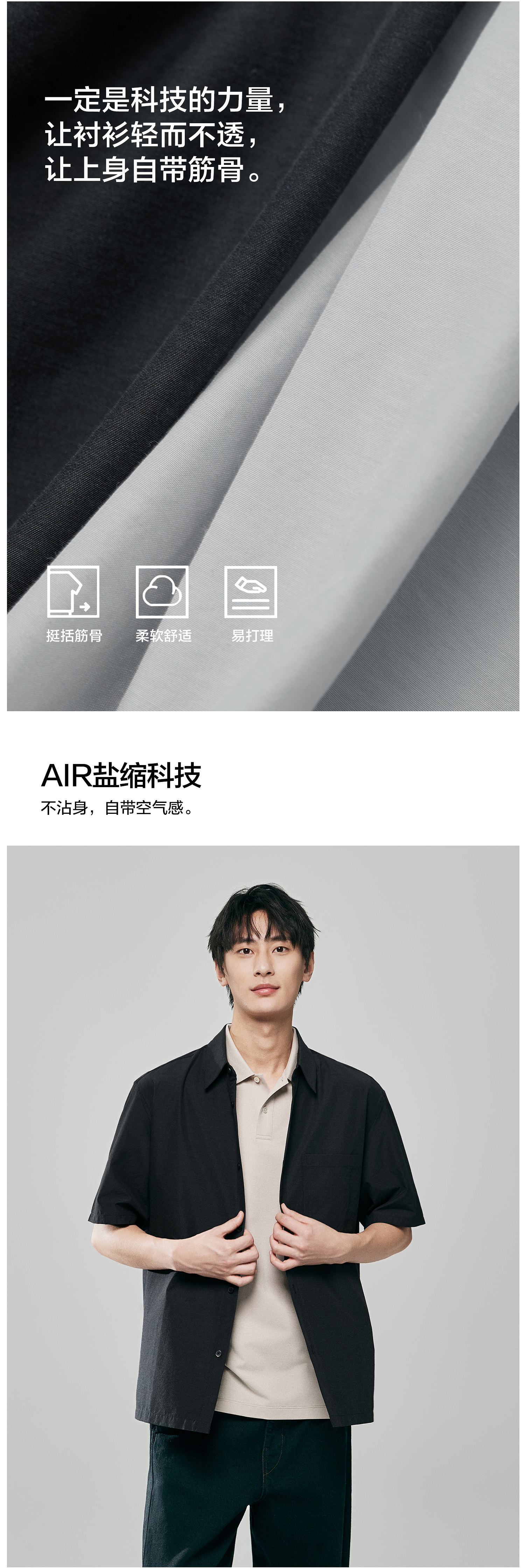 棉仓363804002-微宽松“空气刘海”涤棉肌理翻领短袖衬衫