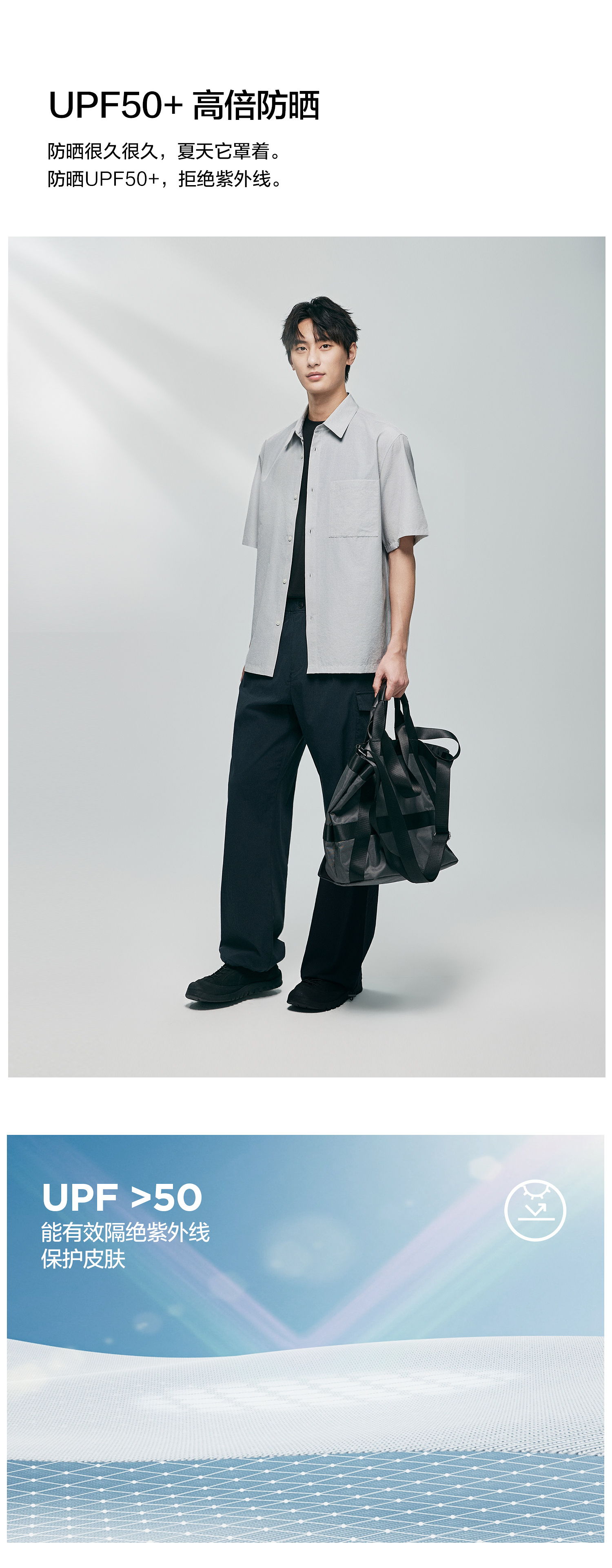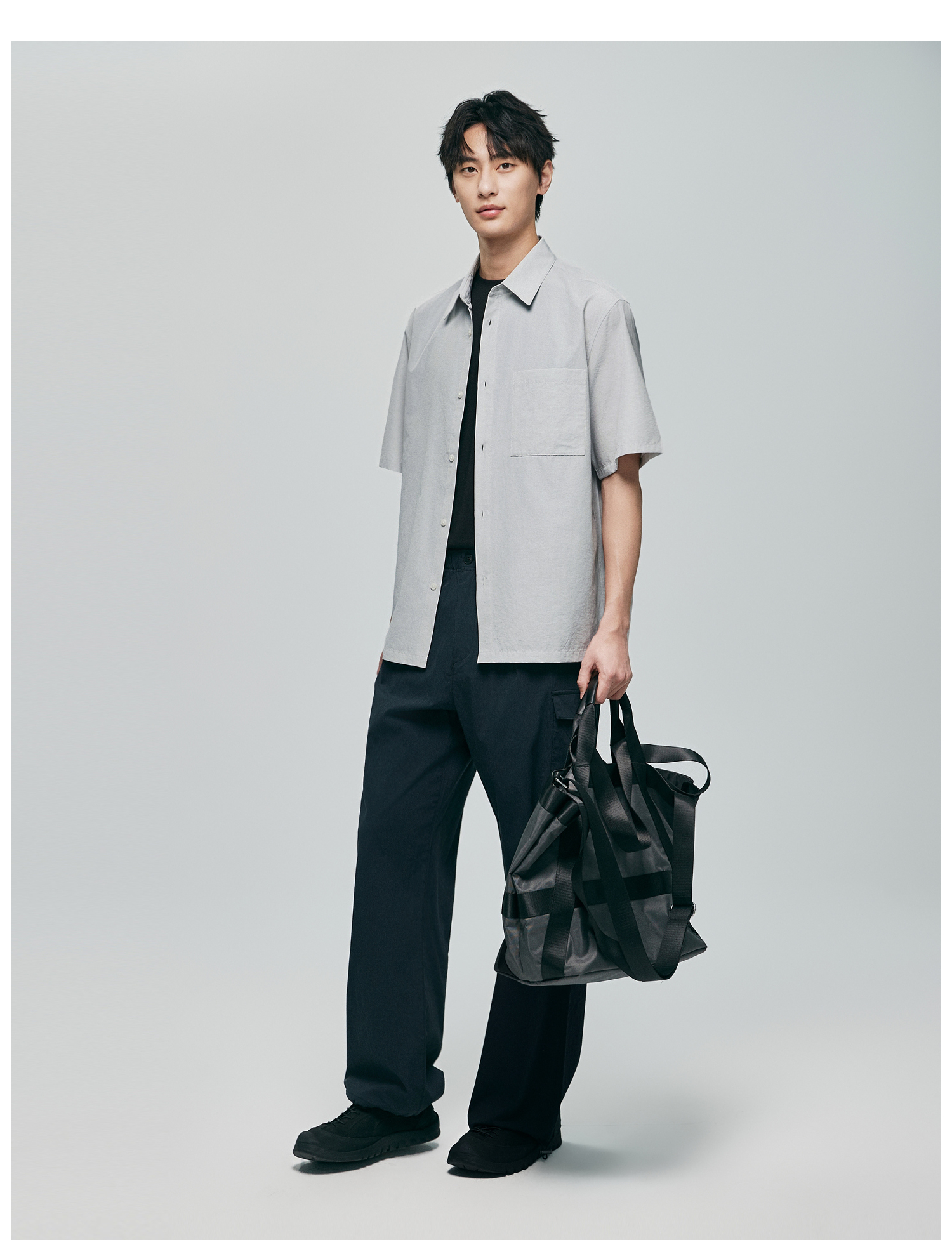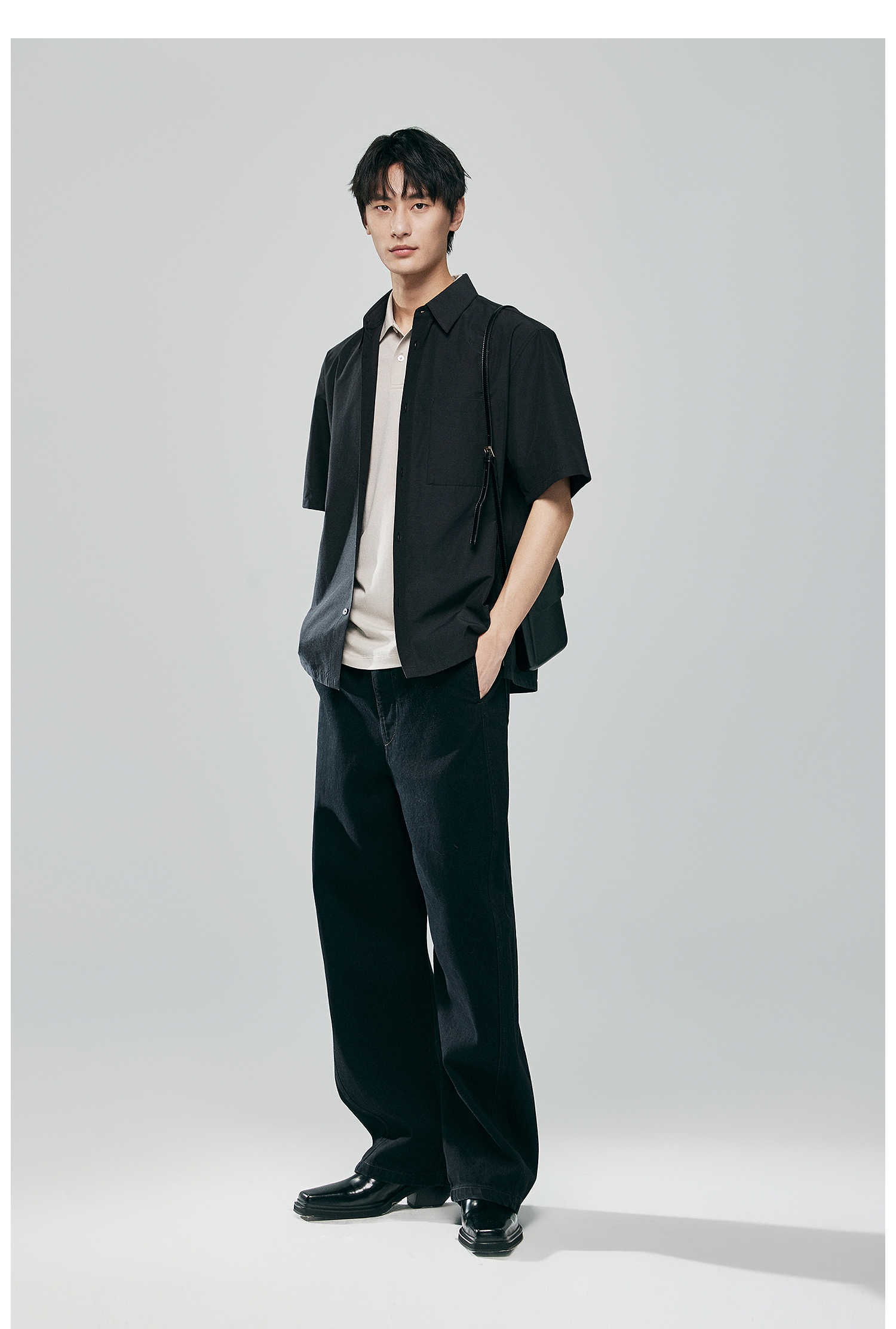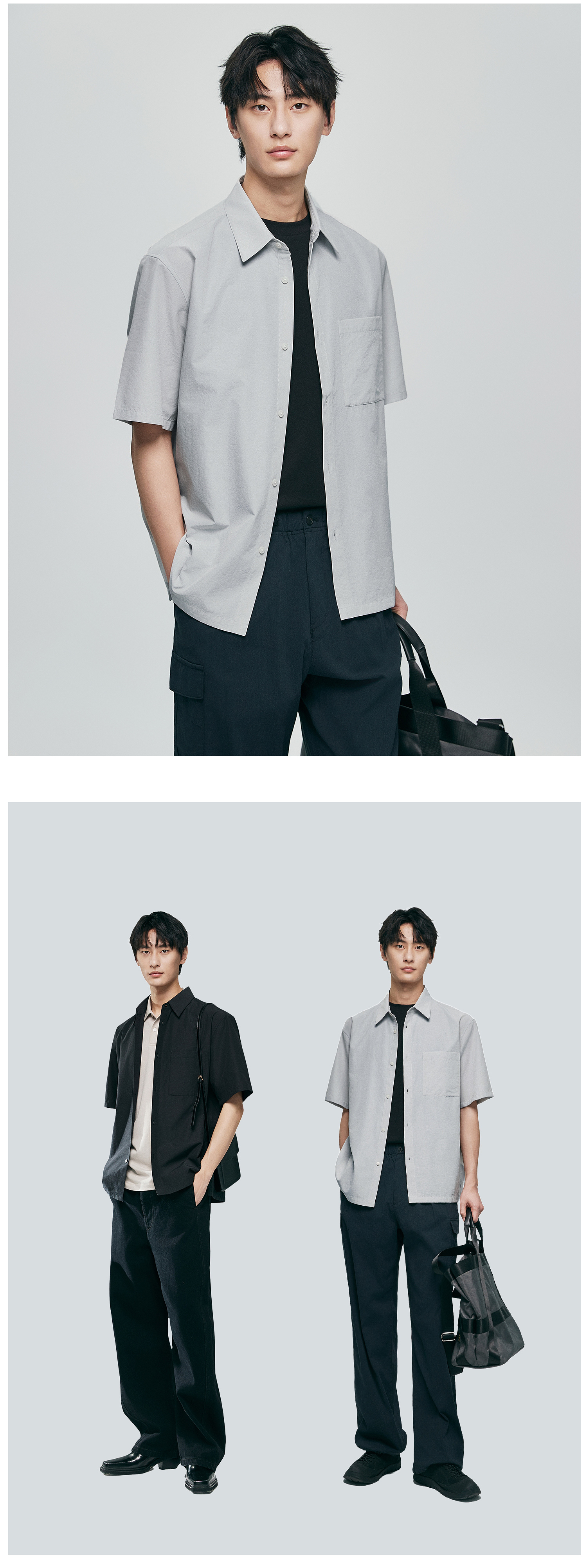 棉仓363804002-微宽松“空气刘海”涤棉肌理翻领短袖衬衫