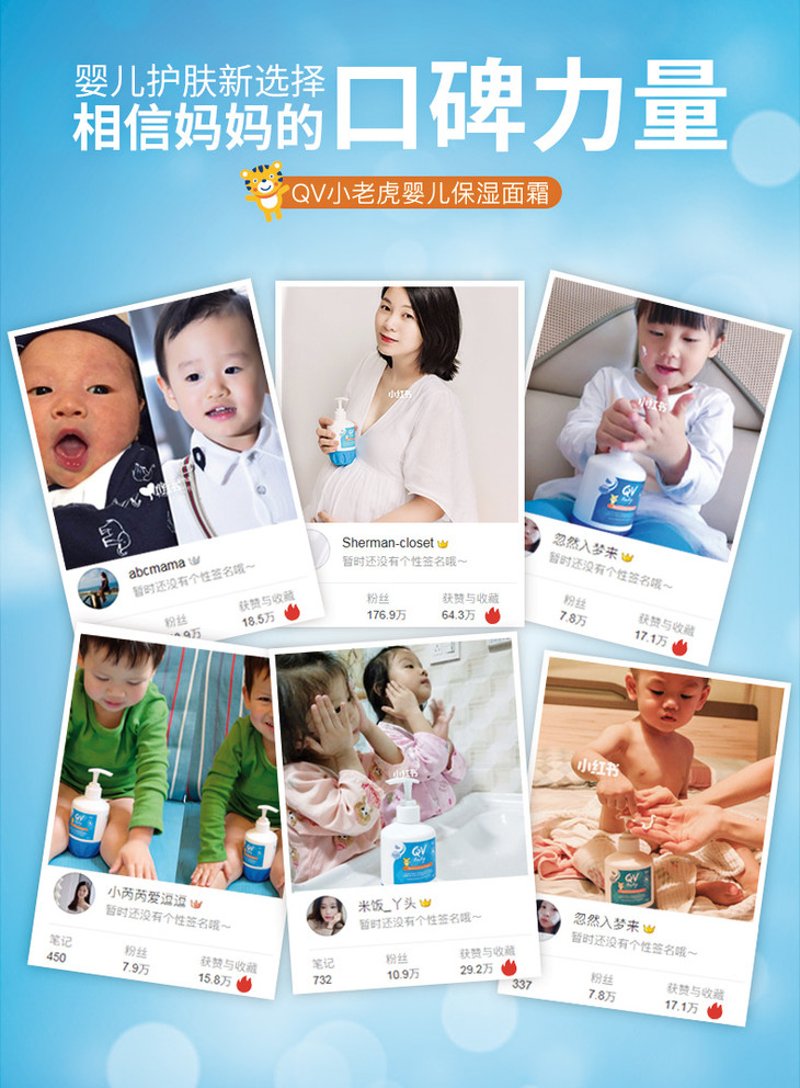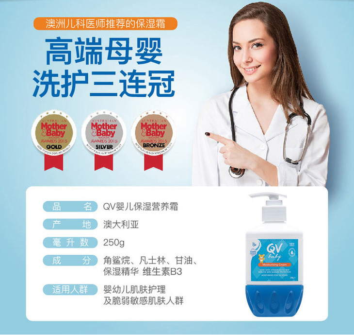 澳洲QV小老虎婴儿润肤霜按压式 250g 宝宝滋润补水