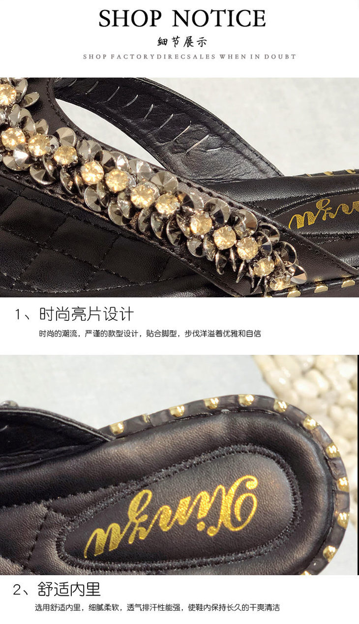 度假软沙滩防滑百搭外穿珍珠水钻人字凉拖鞋