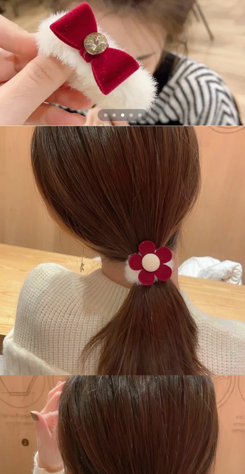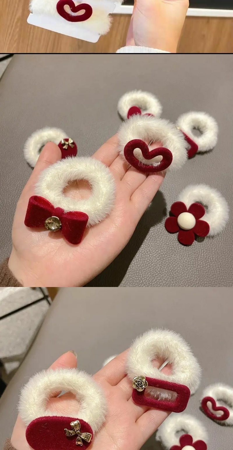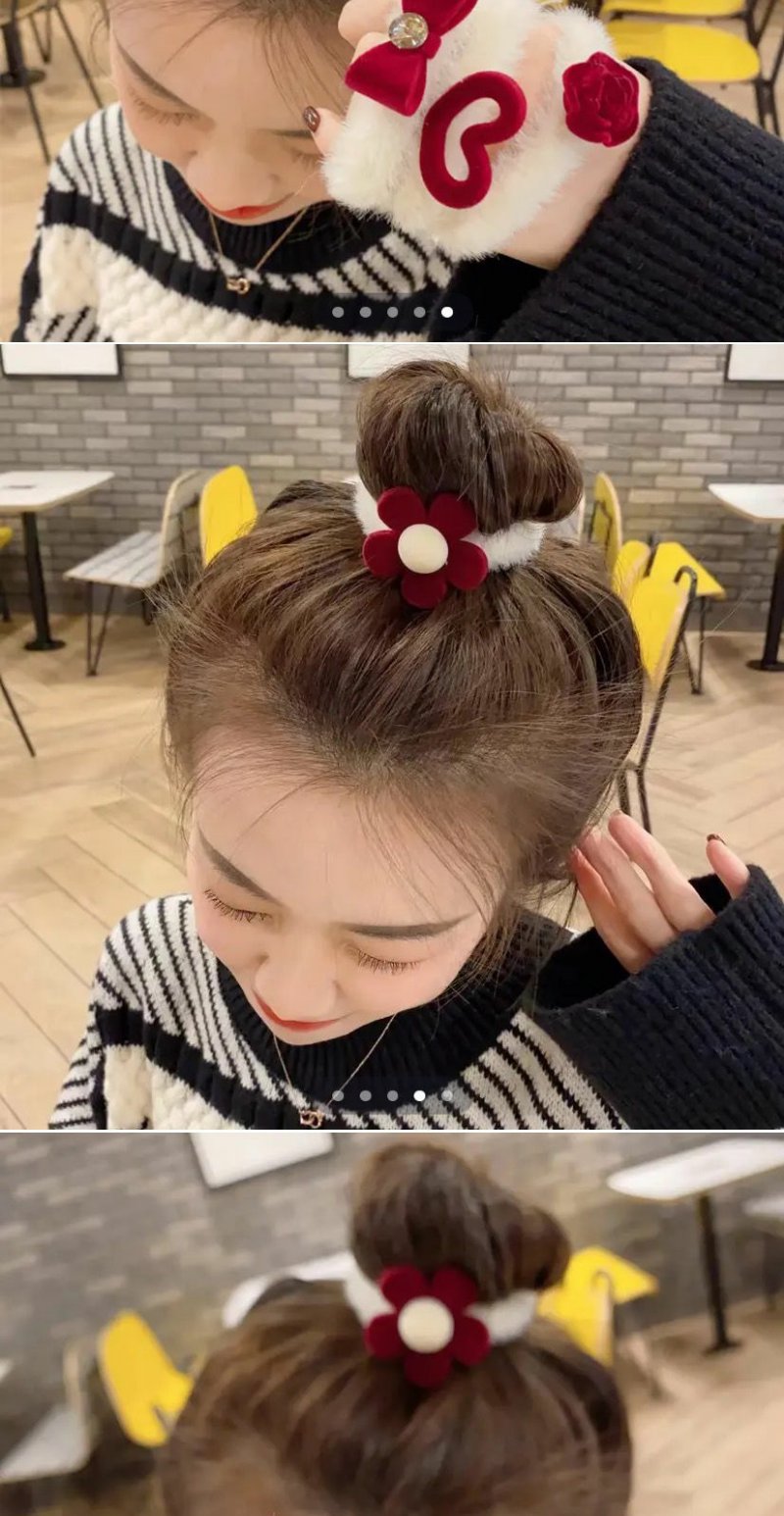 【7只装】新年圣诞韩系植绒毛毛红色发圈丸子头爆款发绳