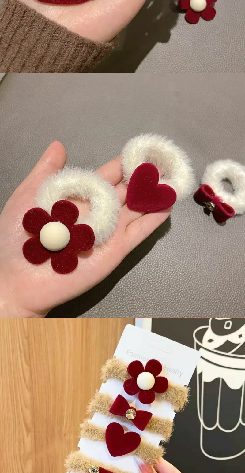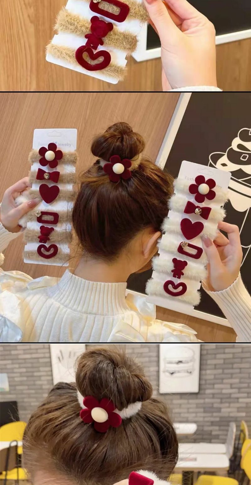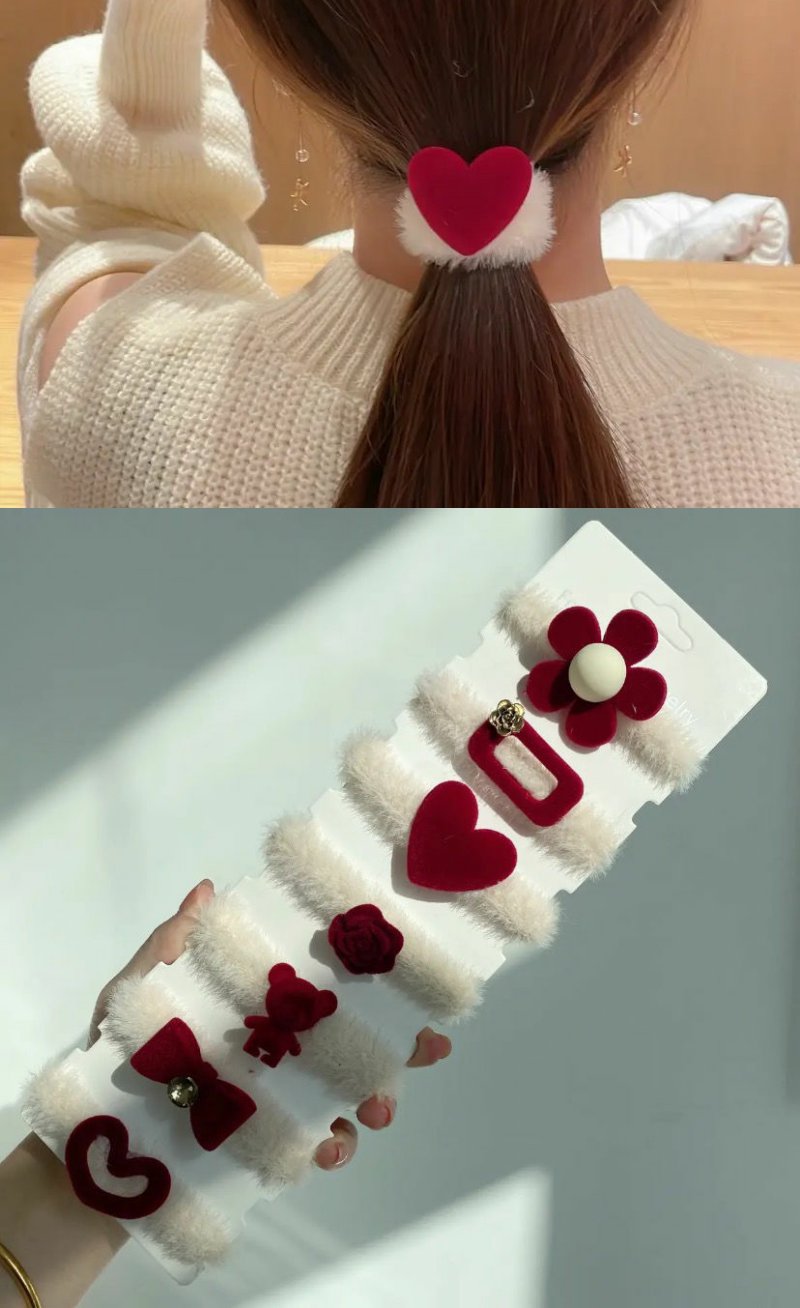 【7只装】新年圣诞韩系植绒毛毛红色发圈丸子头爆款发绳