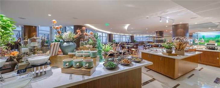 酒店有三个餐厅,自助早餐在悦湖咖啡厅