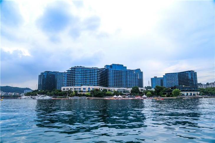 // 三面环湖的酒店 //