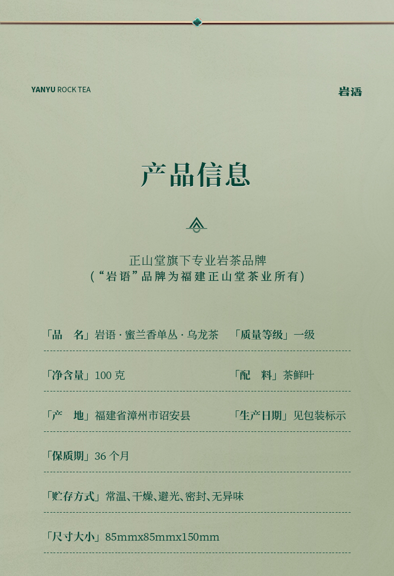 正山堂岩语 蜜兰香单丛 茶叶正宗乌龙茶罐装口粮茶自己喝100g