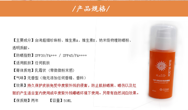 百分百无油珍珠防晒霜(无香型)SPF30/45