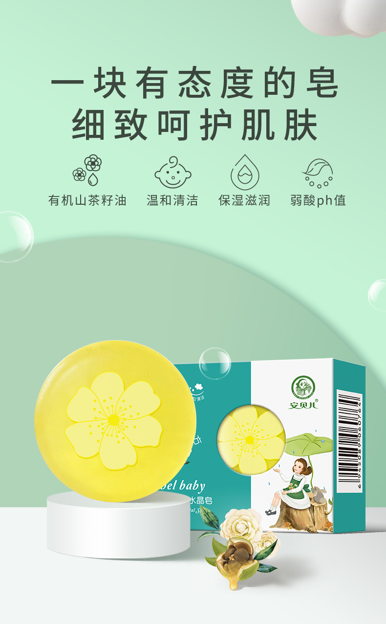 安贝儿幼儿山茶油洁肤水晶皂