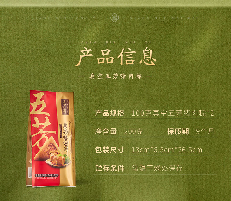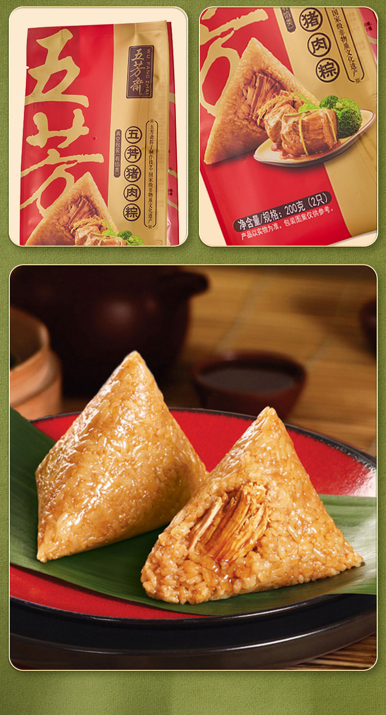 五芳斋 真空五芳猪肉粽 家庭囤货 随吃随蒸 真空5袋组合(100g*2/袋)