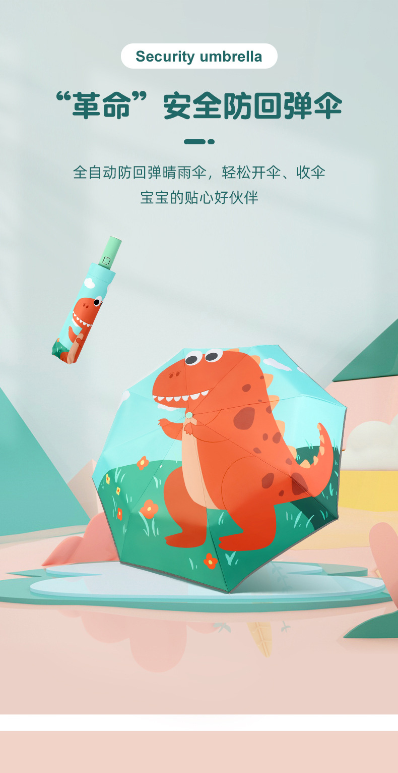 【安全防回弹 宝宝贴心好伙伴】创意防回弹儿童雨伞安全节节收自动儿童伞卡通恐龙学生太阳伞