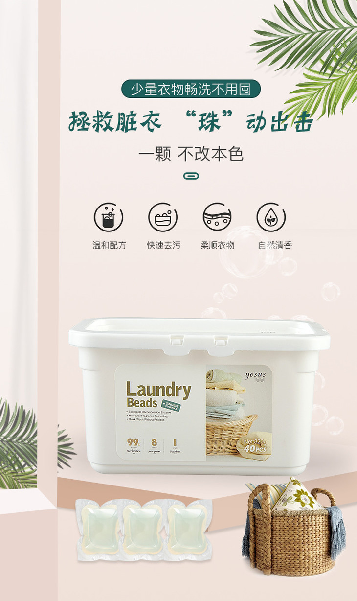 【拯救脏衣】泰国进口yesus洗衣凝珠40颗8倍洁净抑菌护色去渍留香