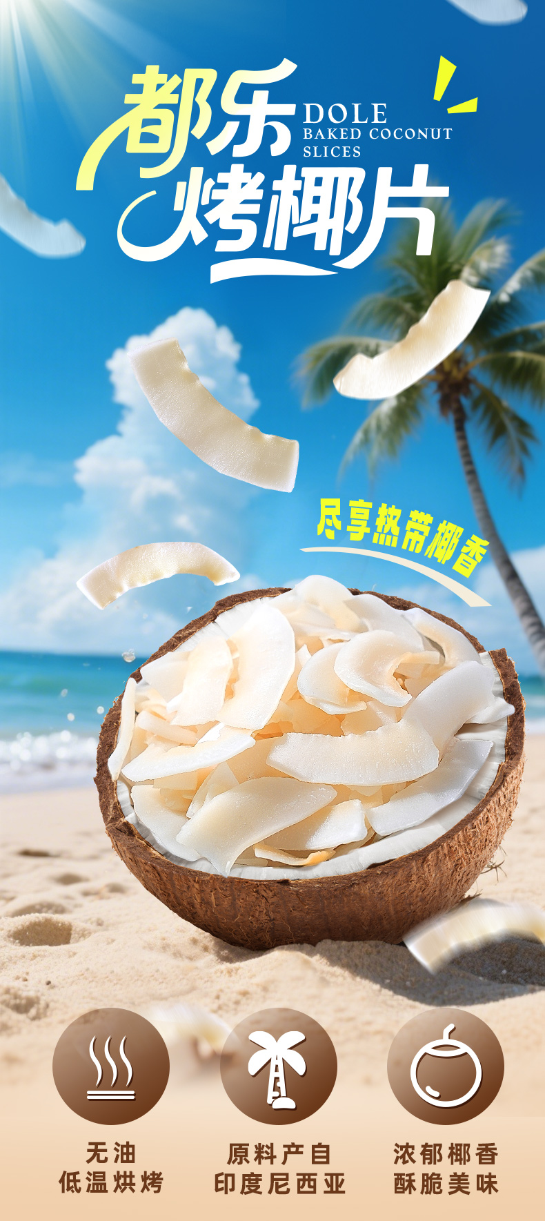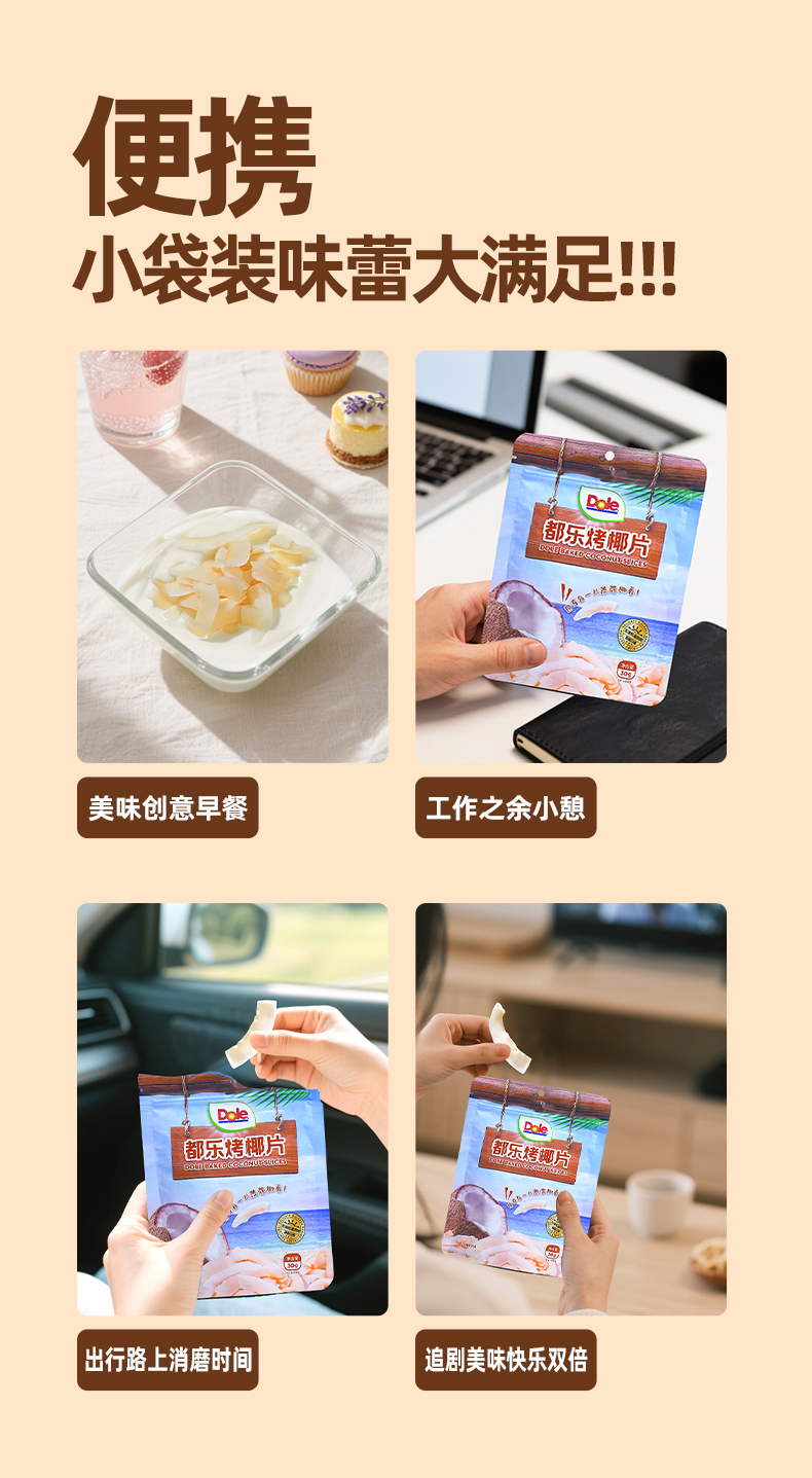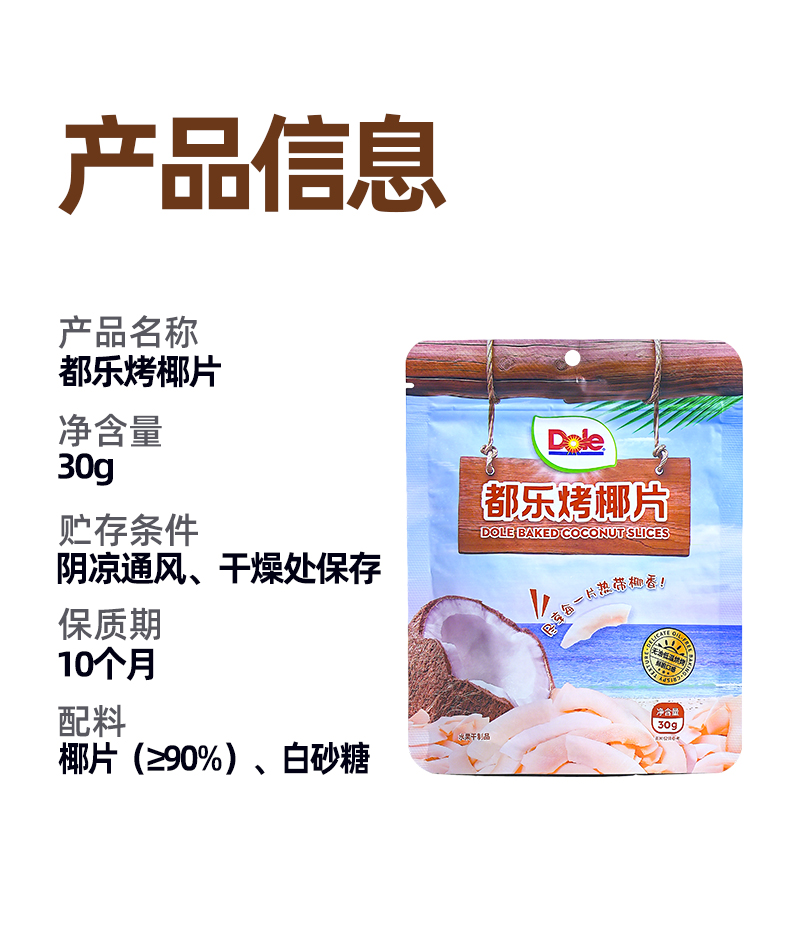 DOLE都乐烤椰片 印度尼西亚原料 休闲零食椰子片椰子脆 30g袋装