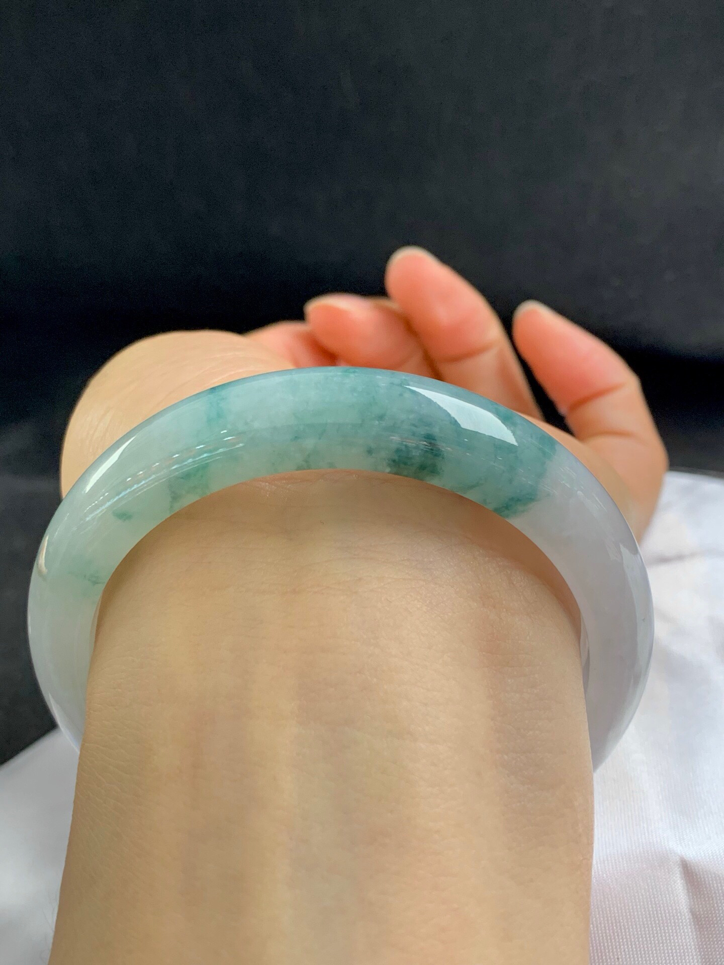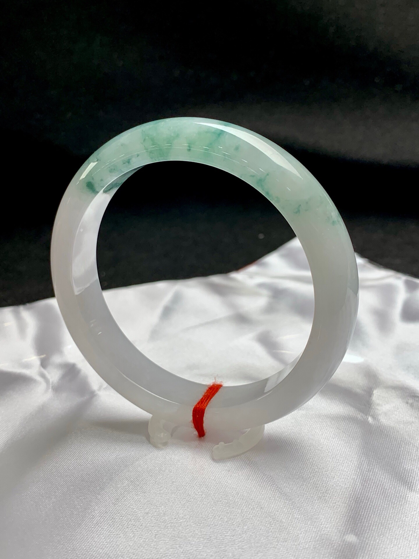 620445,58圈口,糯冰飘花正圈平安镯,白底飘蓝花,种水好,整体清爽,完美,尺寸:58-12.8-8.3,超值价💰24200 #优石客珠宝#香玉荟萃
