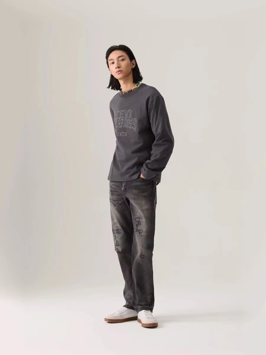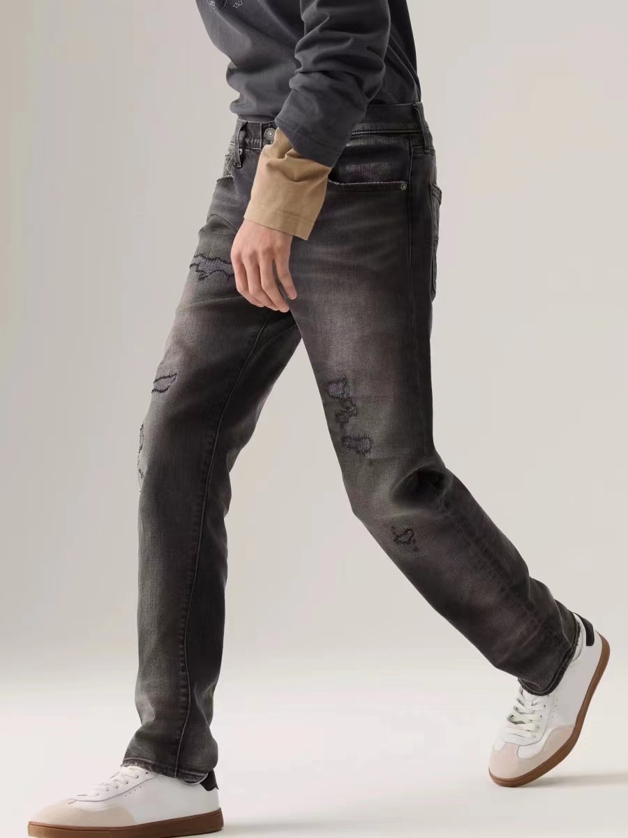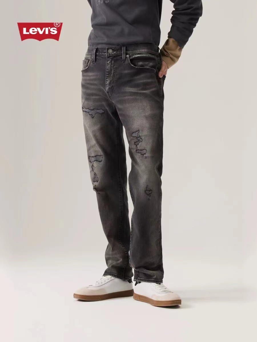 春季新款男士502标准锥形牛仔裤29507,重工拼皮刺绣+高密度高强度做工走线工艺!纯手工打造,耗时耗力!