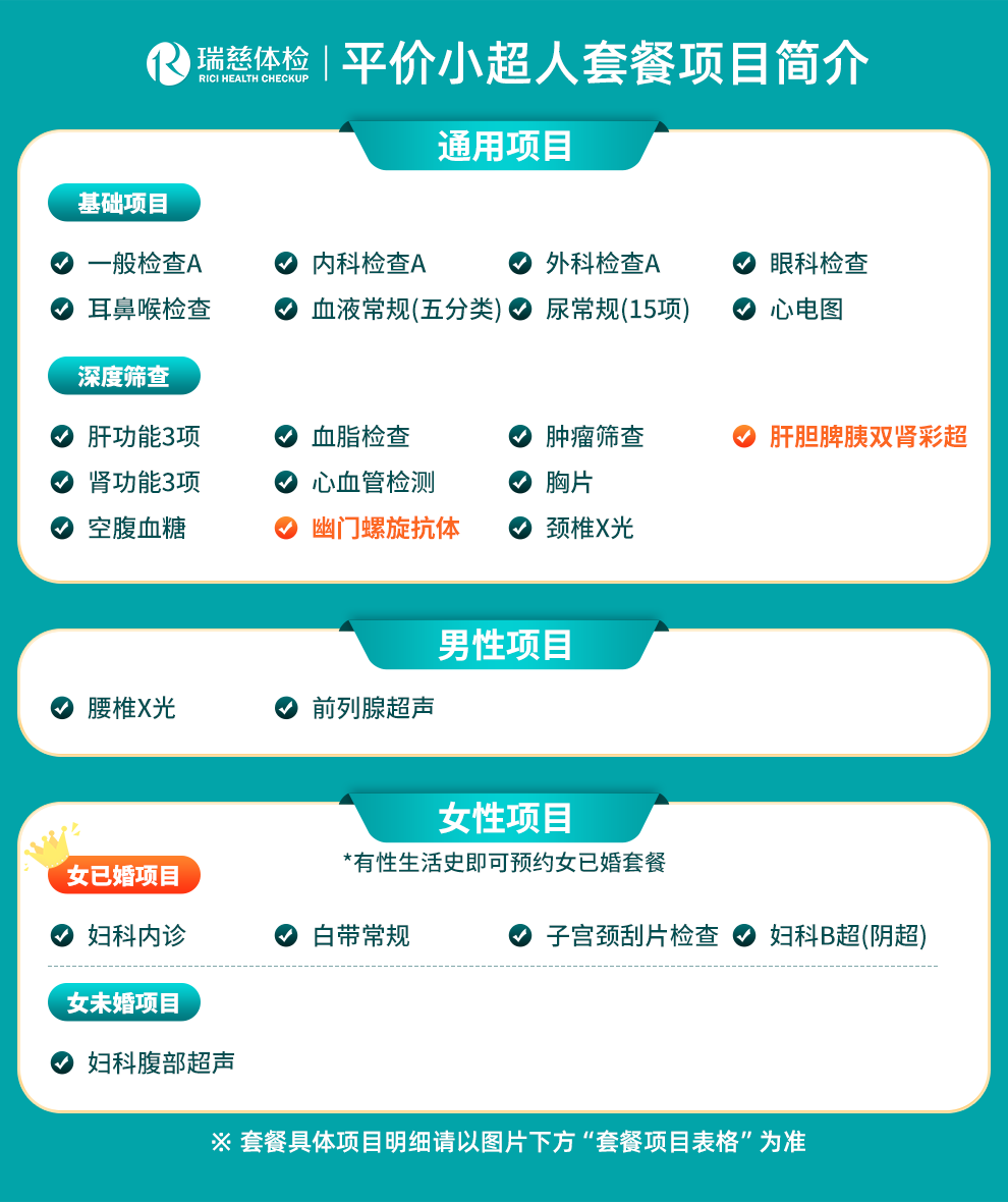| 肾功能三项 超敏C反应蛋白 肿瘤标记物 彩色超声 癌胚抗原(CEA,发光法) |