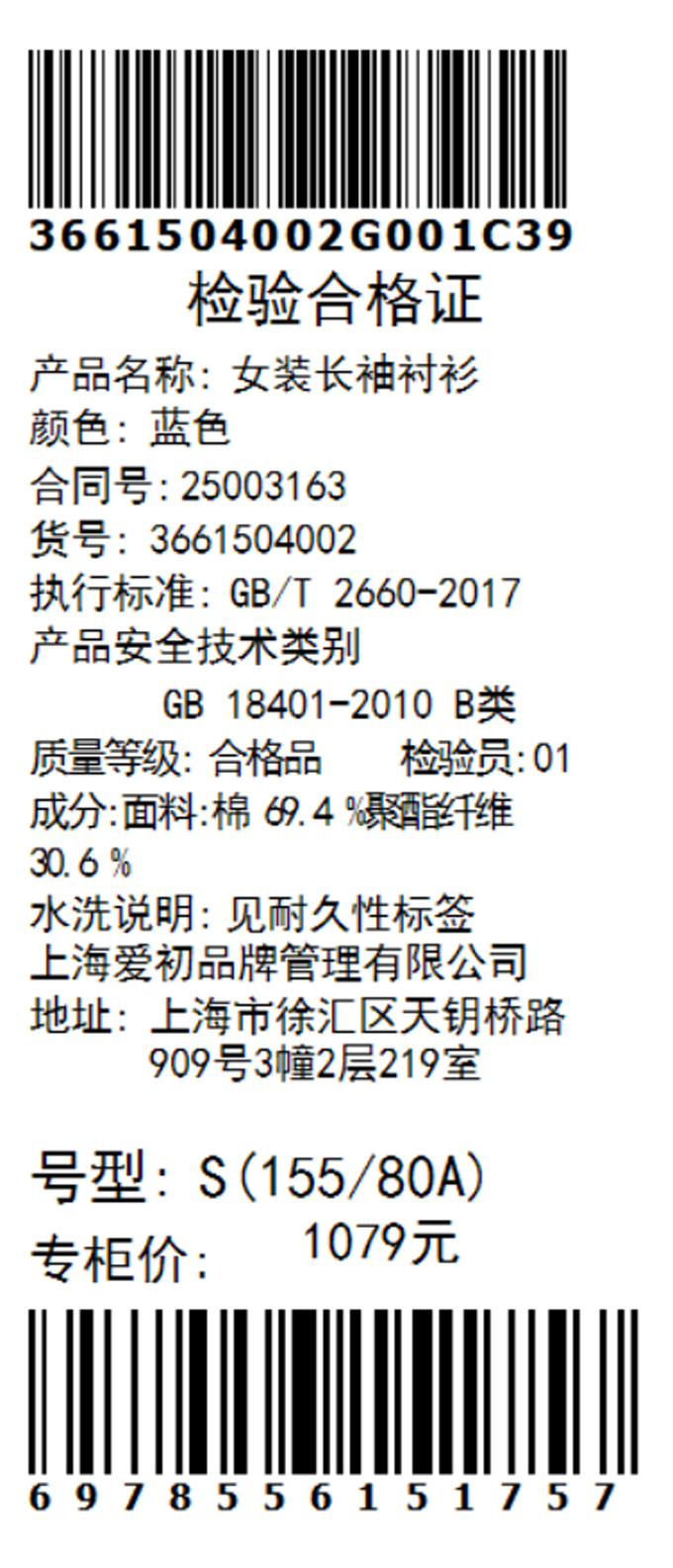 棉仓3661504002-扭扭衬衫短款衬衫下摆可塑形
