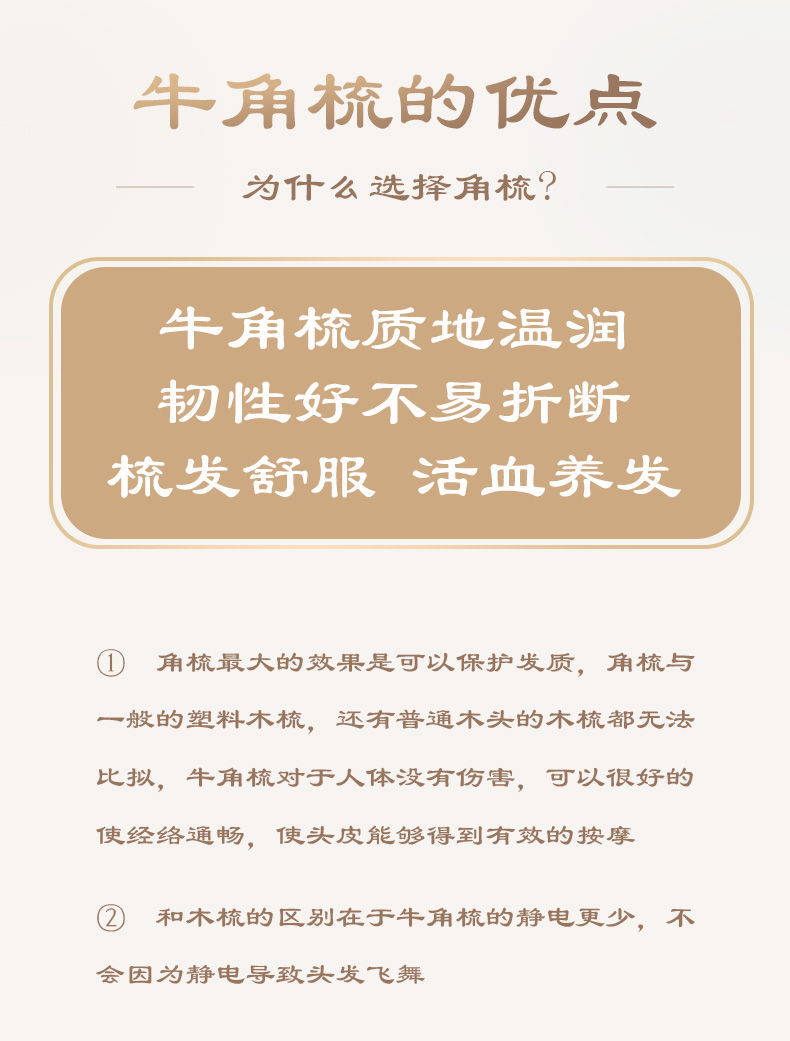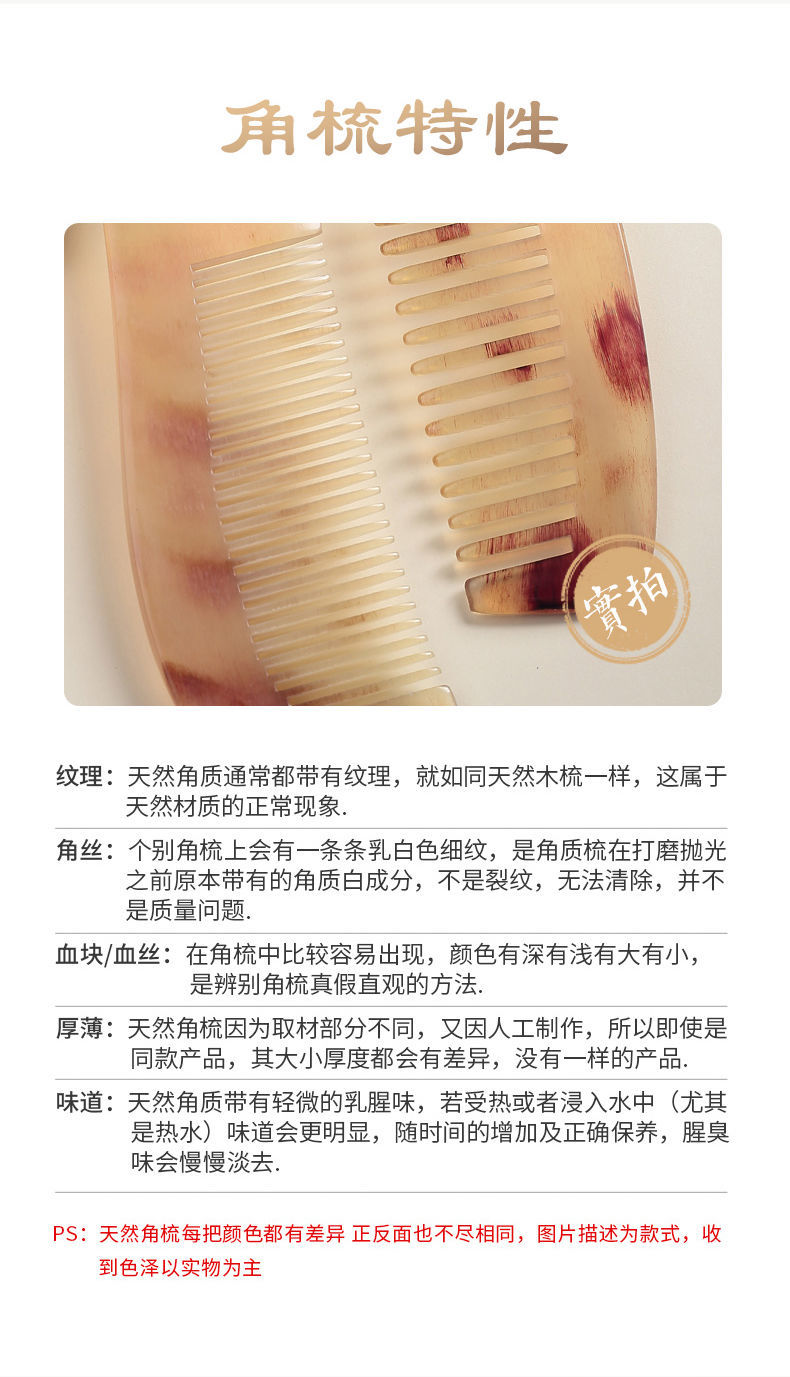 正宗天然牛角梳子女士家用小巧便携按摩梳男士防静电梳头小梳子
