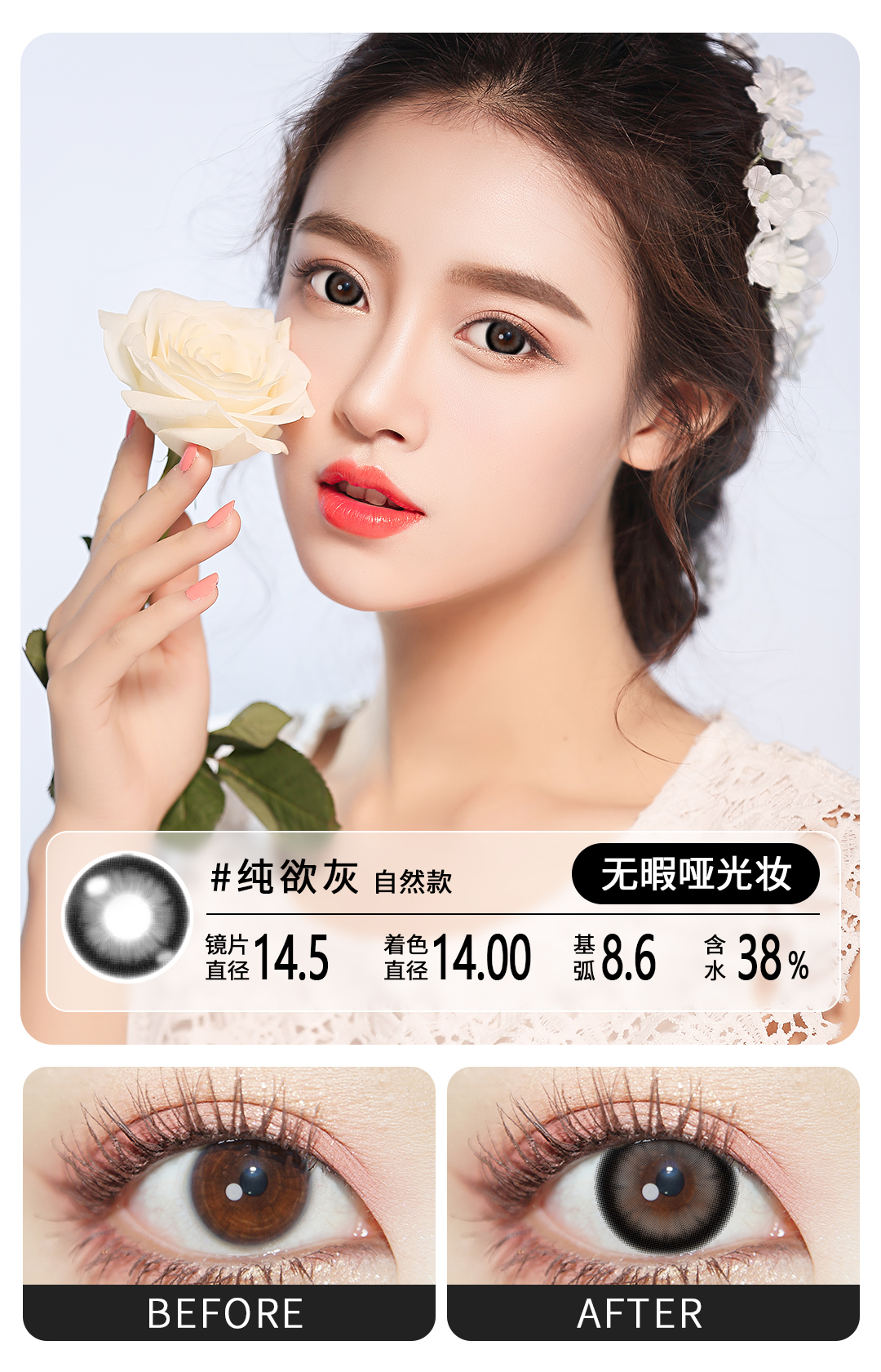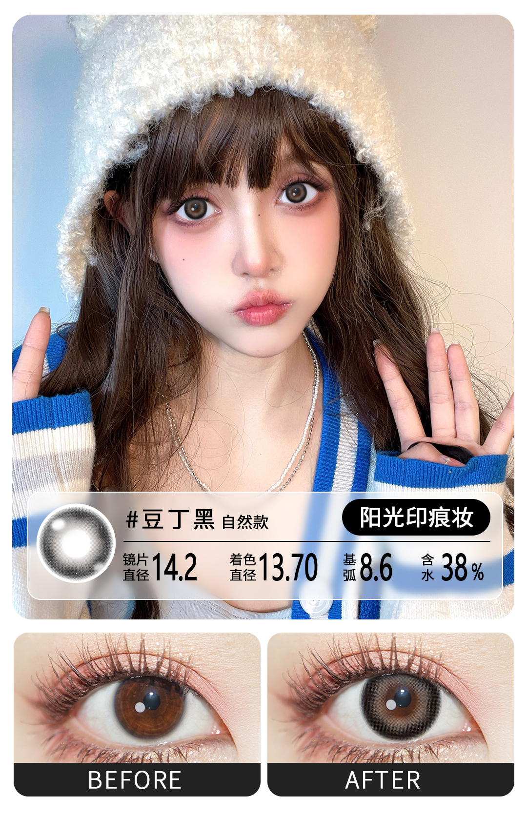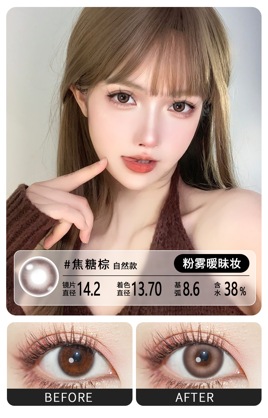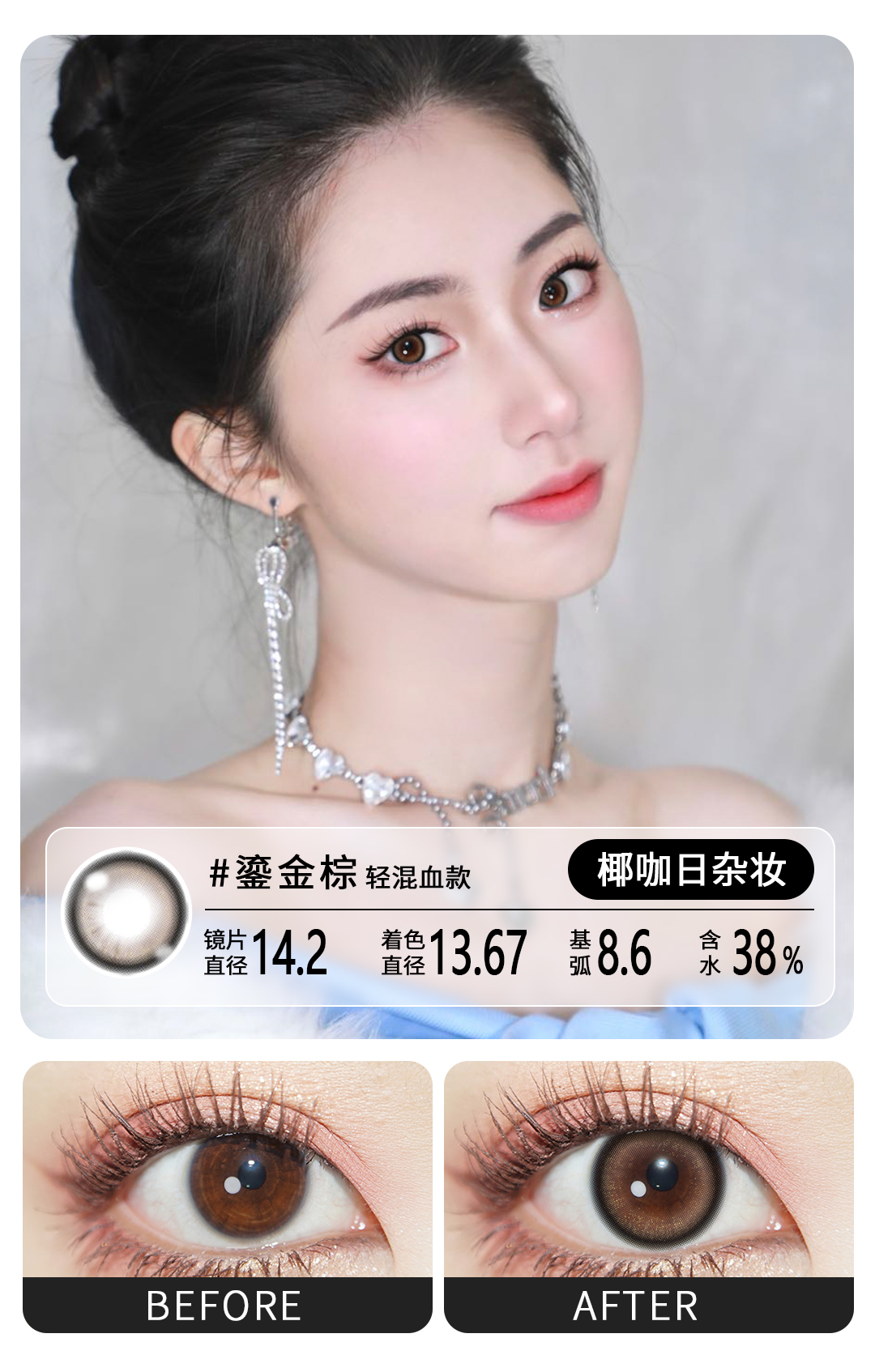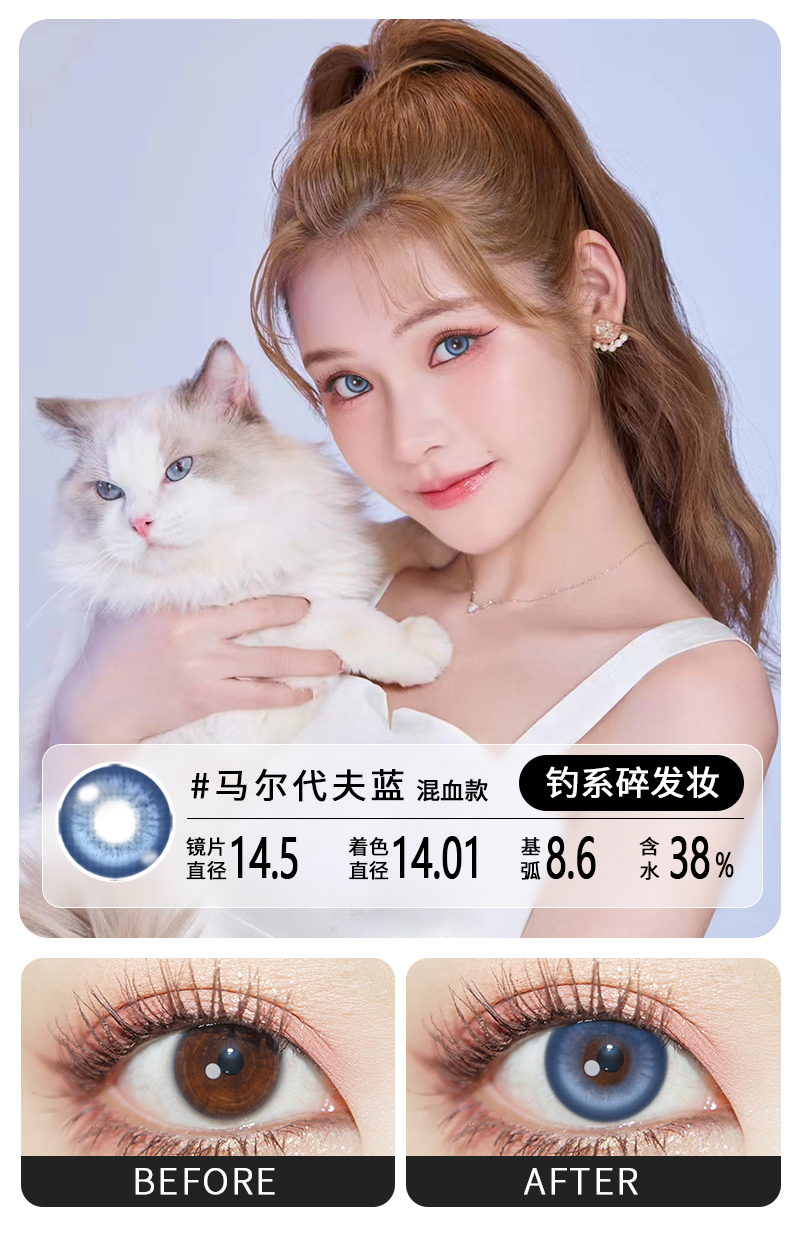 魅惑复古通勤必备眼珠子半年抛美瞳一片装(1副拍2,YB08)