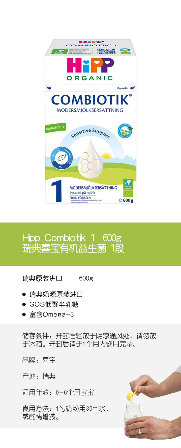 [瑞典]喜宝有机益生菌1段0-6个月 600g. Hipp Combiotik 1 Modersmjölksers Från 0 Månader