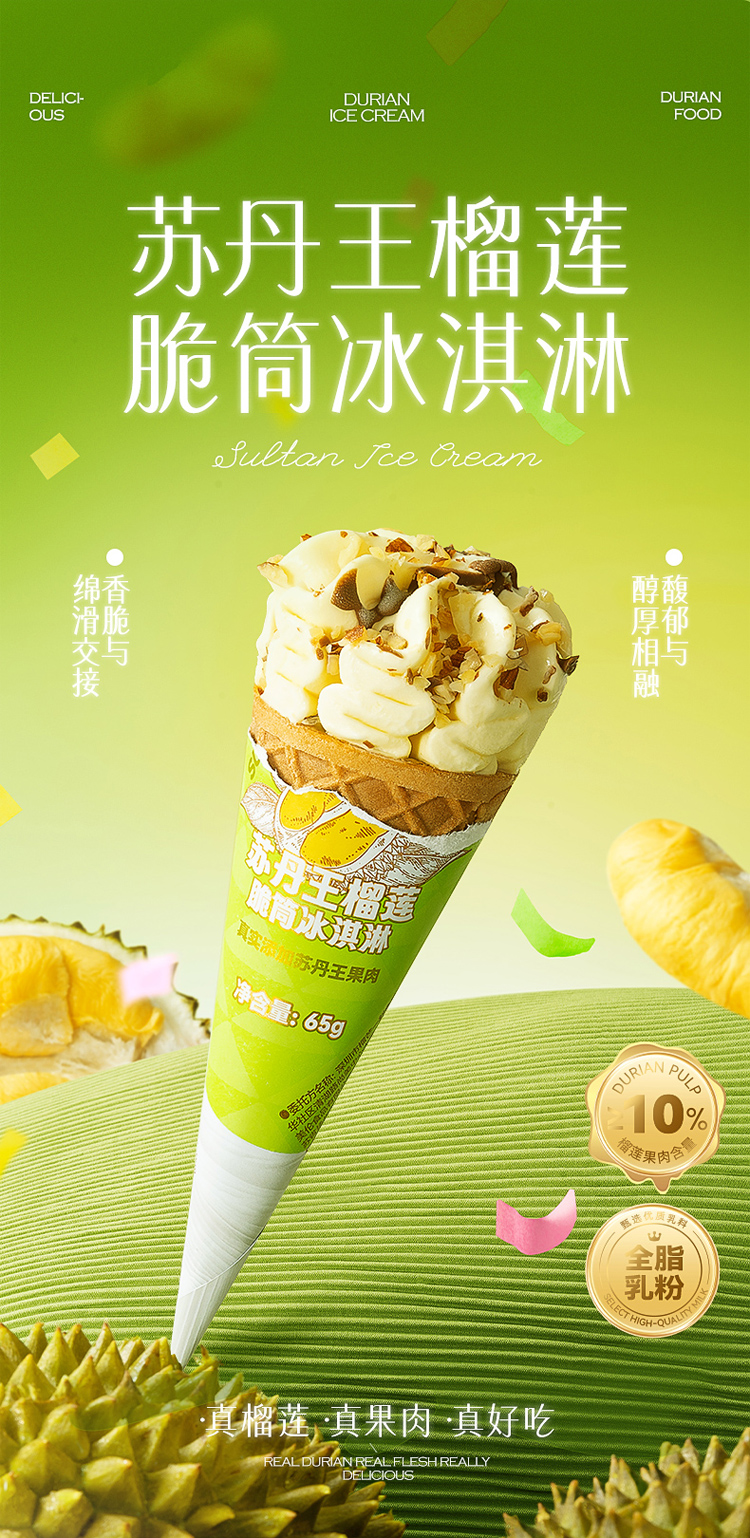 【到手16支】猫山王榴莲冰淇淋25g*8支+苏丹王榴莲脆筒65g*8支 真榴莲真果肉 果香浓郁HY