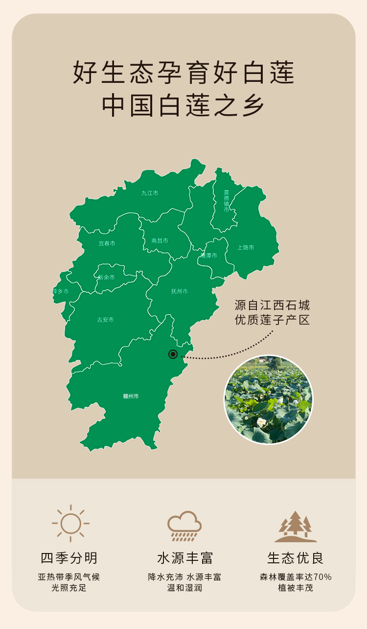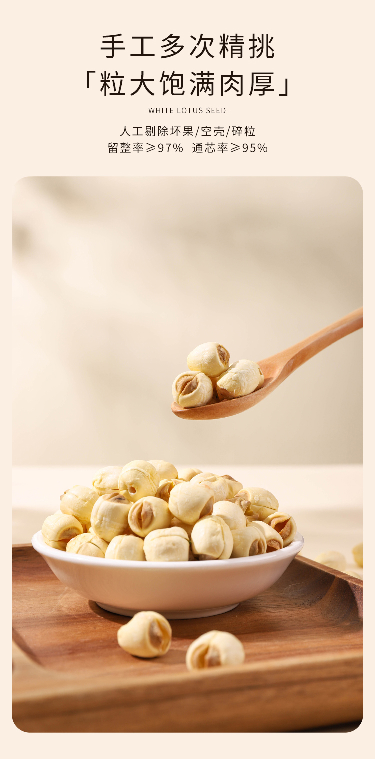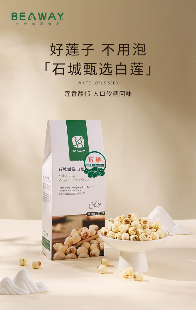 北纬纯净食品|38°江西石城甄选白莲子富硒去芯莲子粉糯无硫不漂白220g