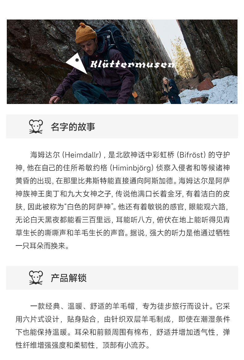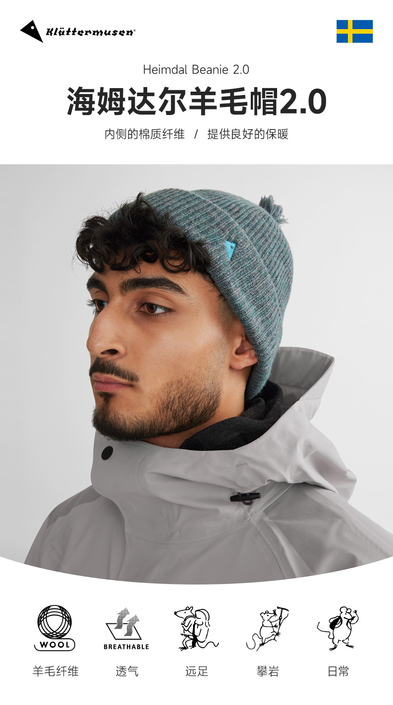 Klattermusen攀山鼠秋冬保暖羊毛帽无檐毛线帽子海姆达尔 10427